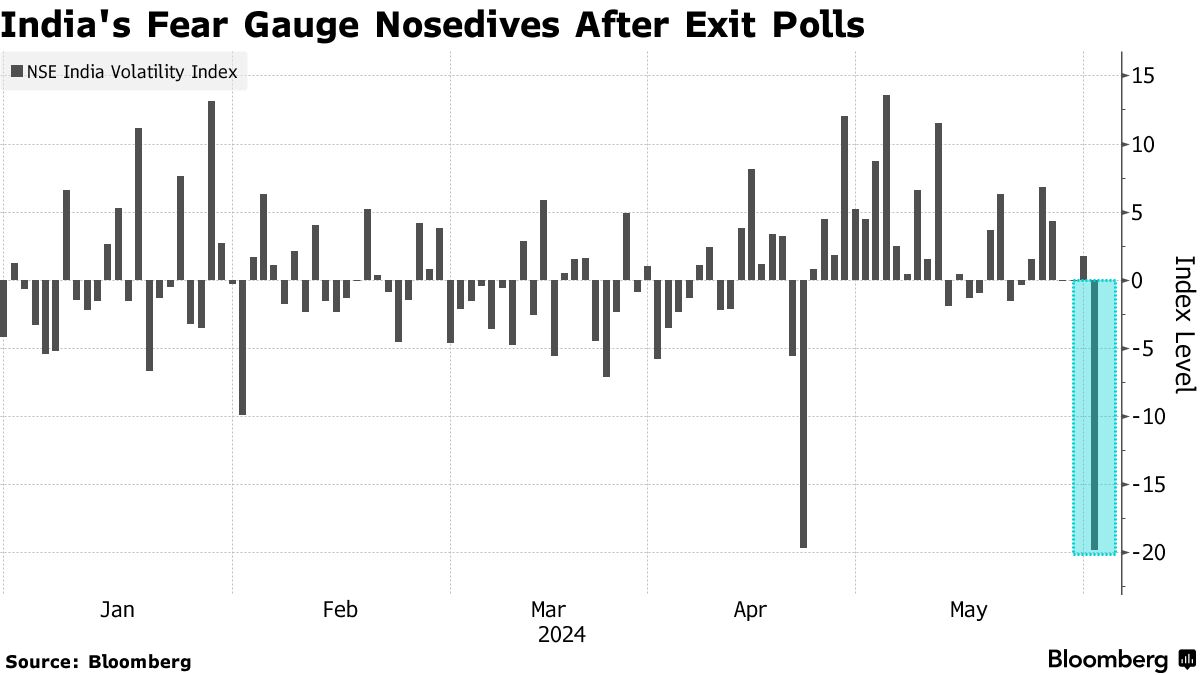 印度将于周二公布选举结果,投资者已经因为根据出口民调预测看好总理纳伦德拉·莫迪连任第三个任期而欢呼,推动股市创下历史新高。