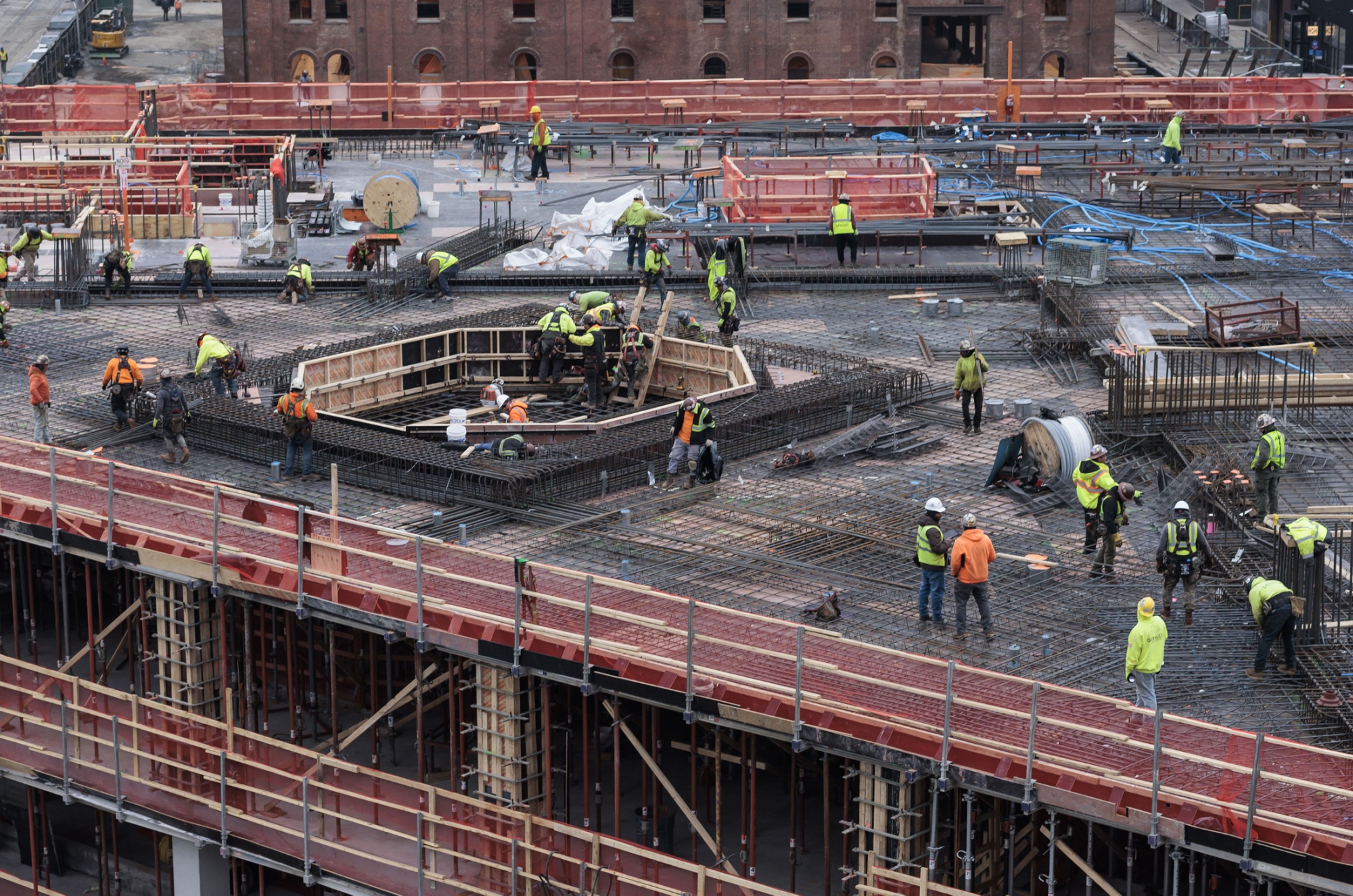 纽约布鲁克林的建筑工人。移民的涌入缓解了一直紧张的劳动力市场压力。