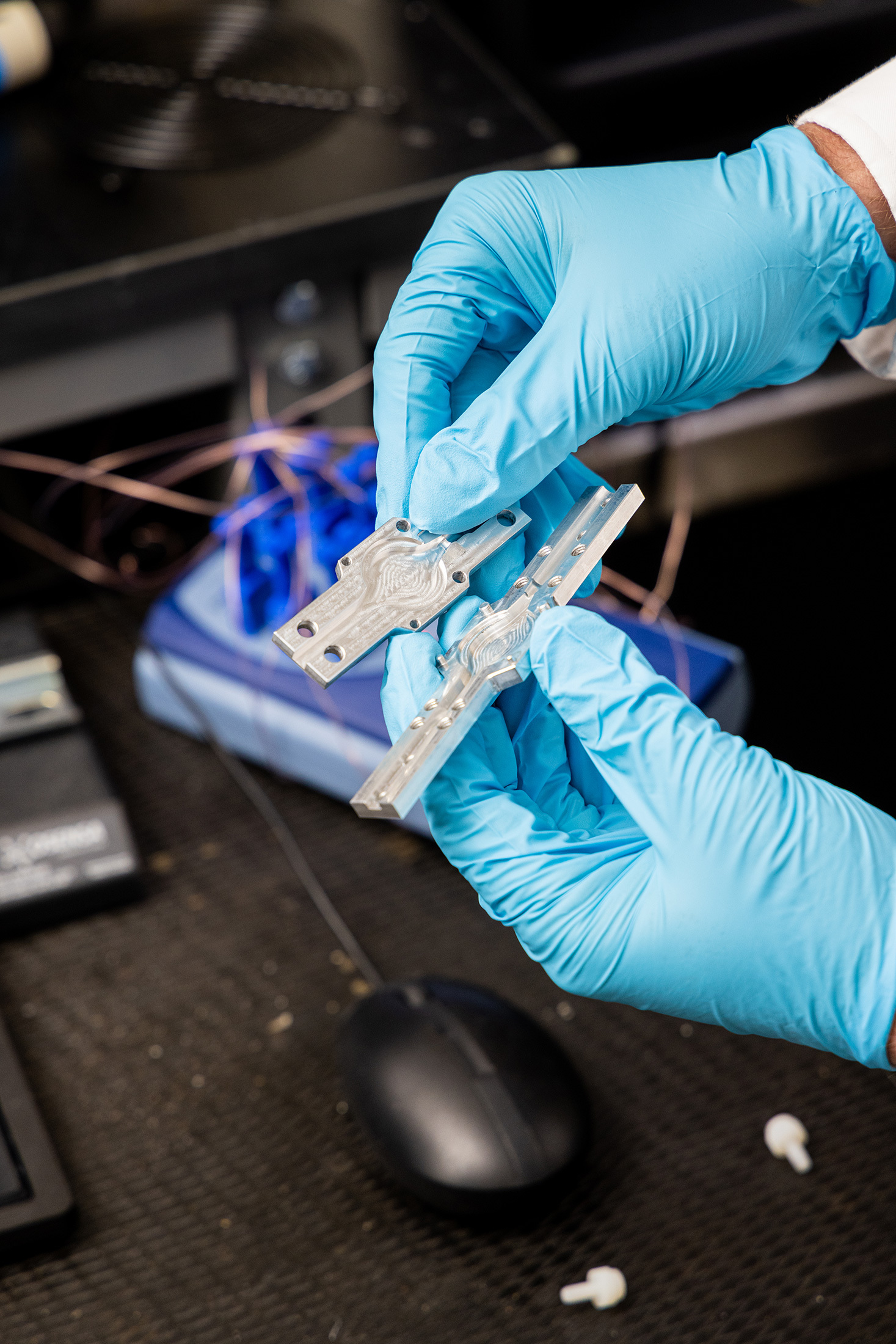 用于Cradle测试机器的大脑切片样本支架。摄影师:杰森·亨利(Jason Henry)为彭博商业周刊拍摄Cradle的15名员工中有许多人为这些机器的设计做出了贡献。一些关键的创新来自公司联合创始人兼首席科学官亨特·戴维斯(Hunter Davis)。33岁的戴维斯拥有物理学、化学和经济学学位,在加入Cradle之前,他忙于构建激光器,研究植物光合作用的量子力学特性。