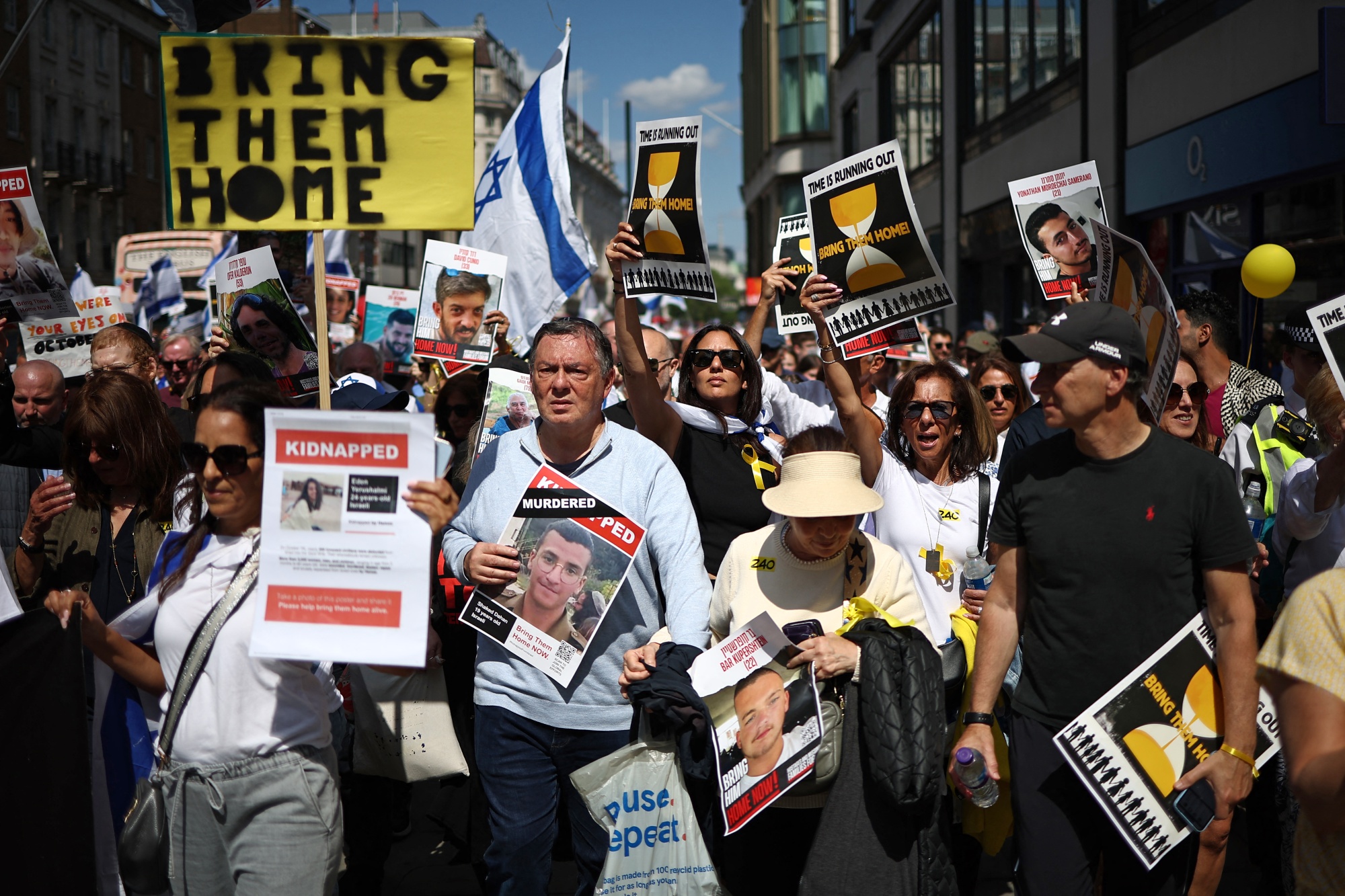 抗议者参加了6月2日在伦敦举行的“团结我们把他们带回家”游行。