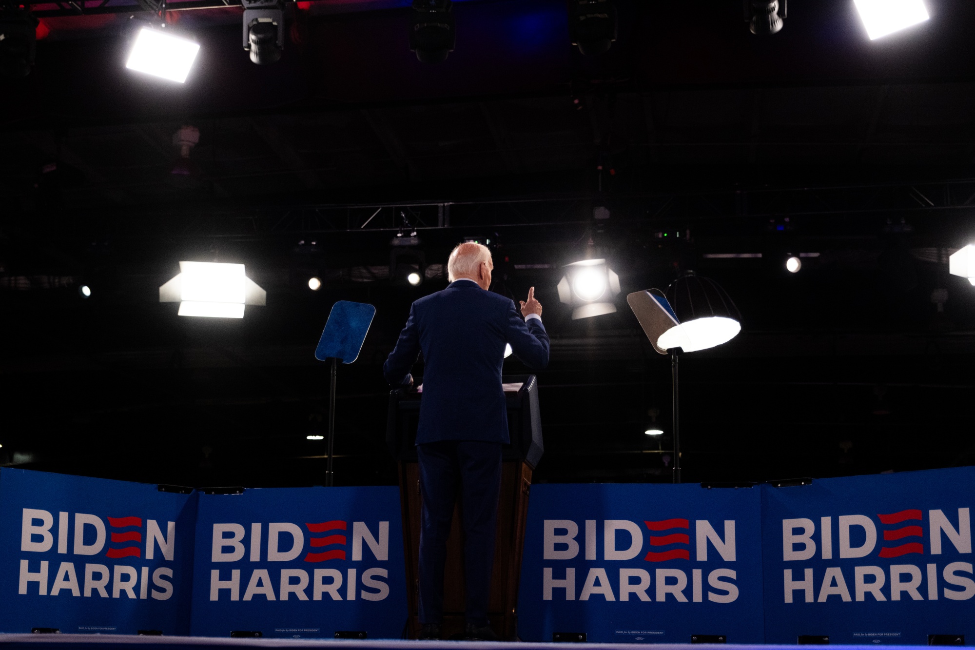 美国总统乔·拜登在罗利的一次竞选活动中。