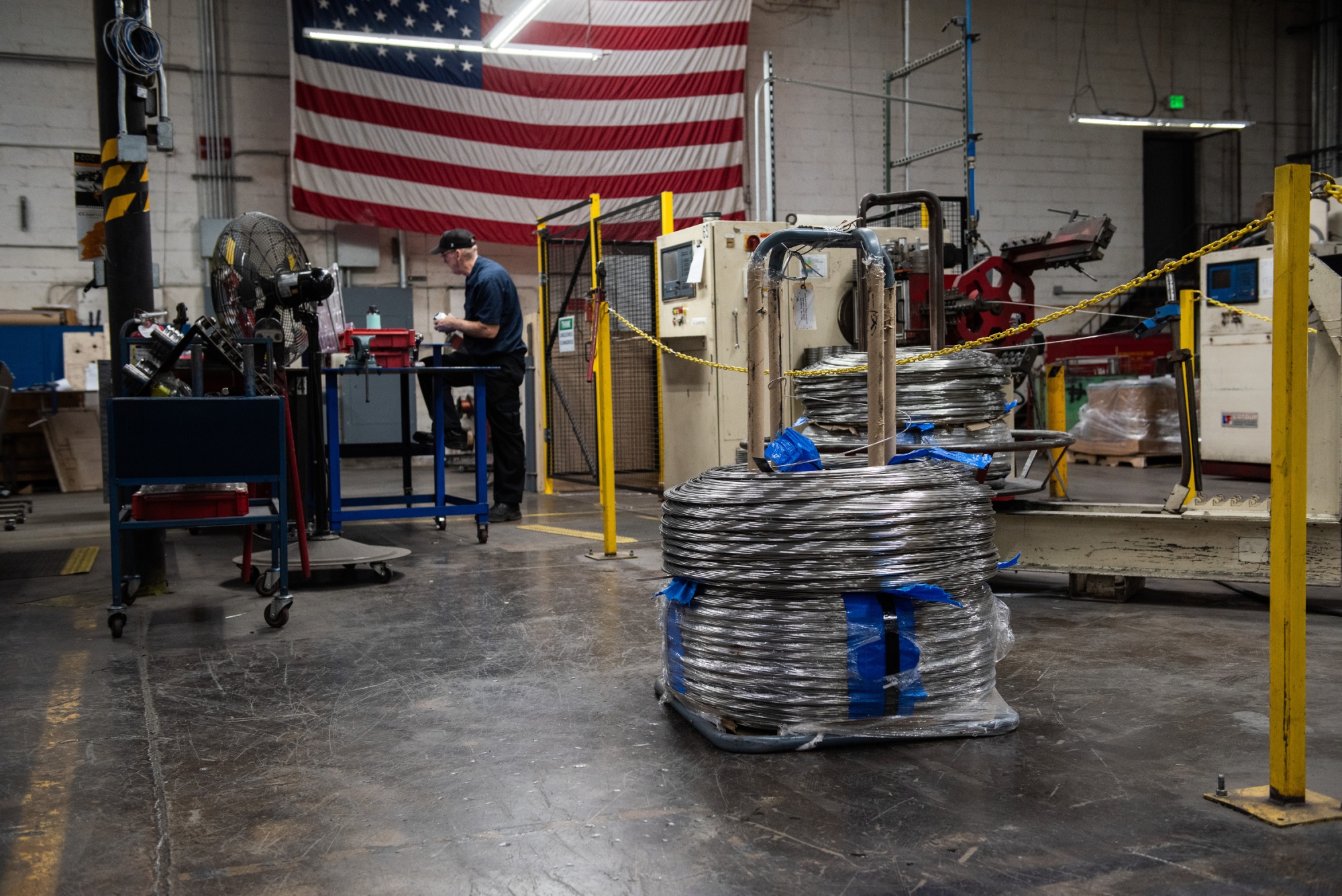 马里兰州巴尔的摩的一家线材工厂里的钢卷。