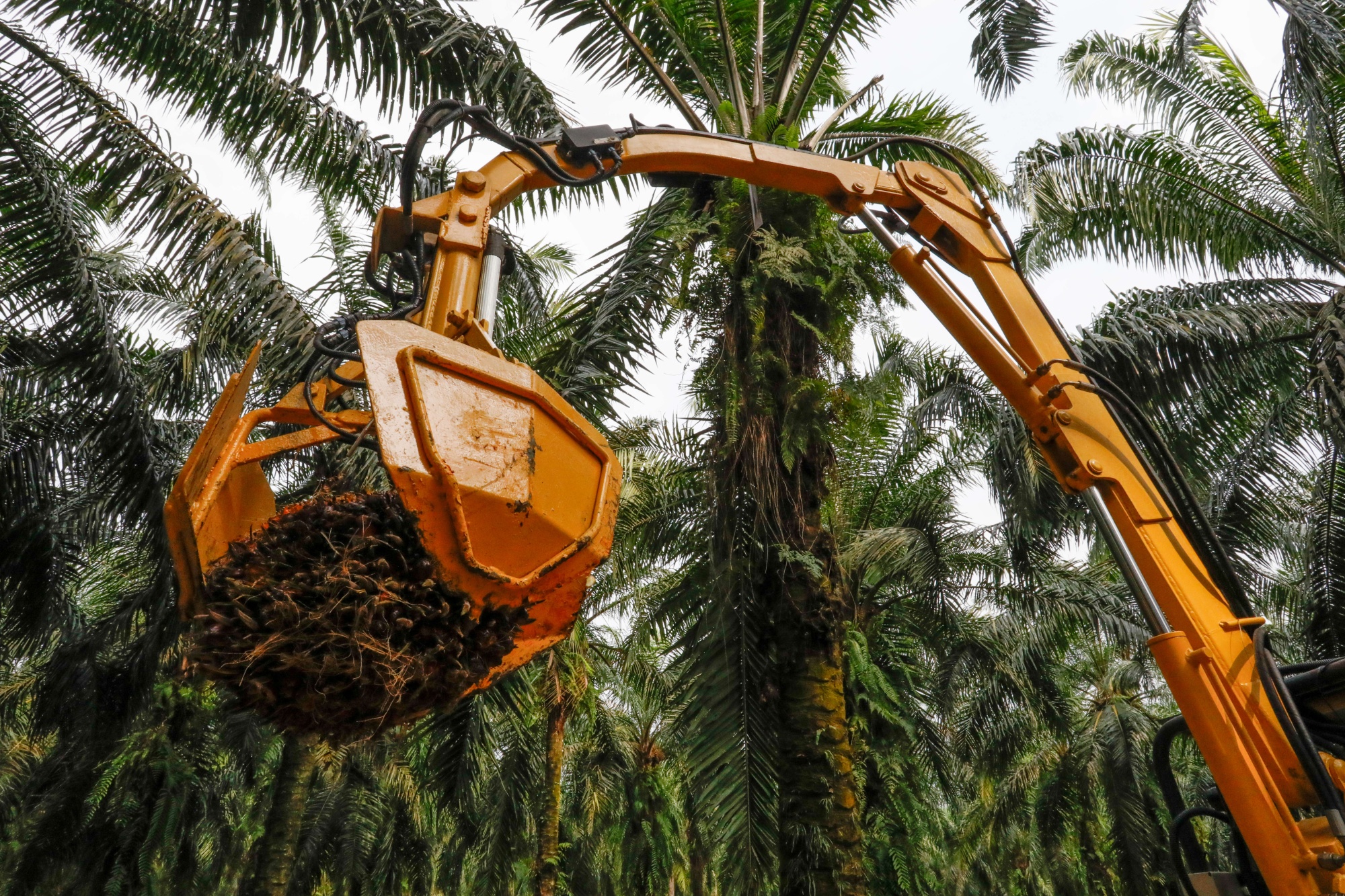 一架无人机在潮湿的马来西亚早晨在树木间嗡嗡作响,监视着油棕果实的成熟情况。自动驾驶卡车在广阔的种植园不平整的地面上隆隆作响,施肥并收集密集的收割成束的果穗。