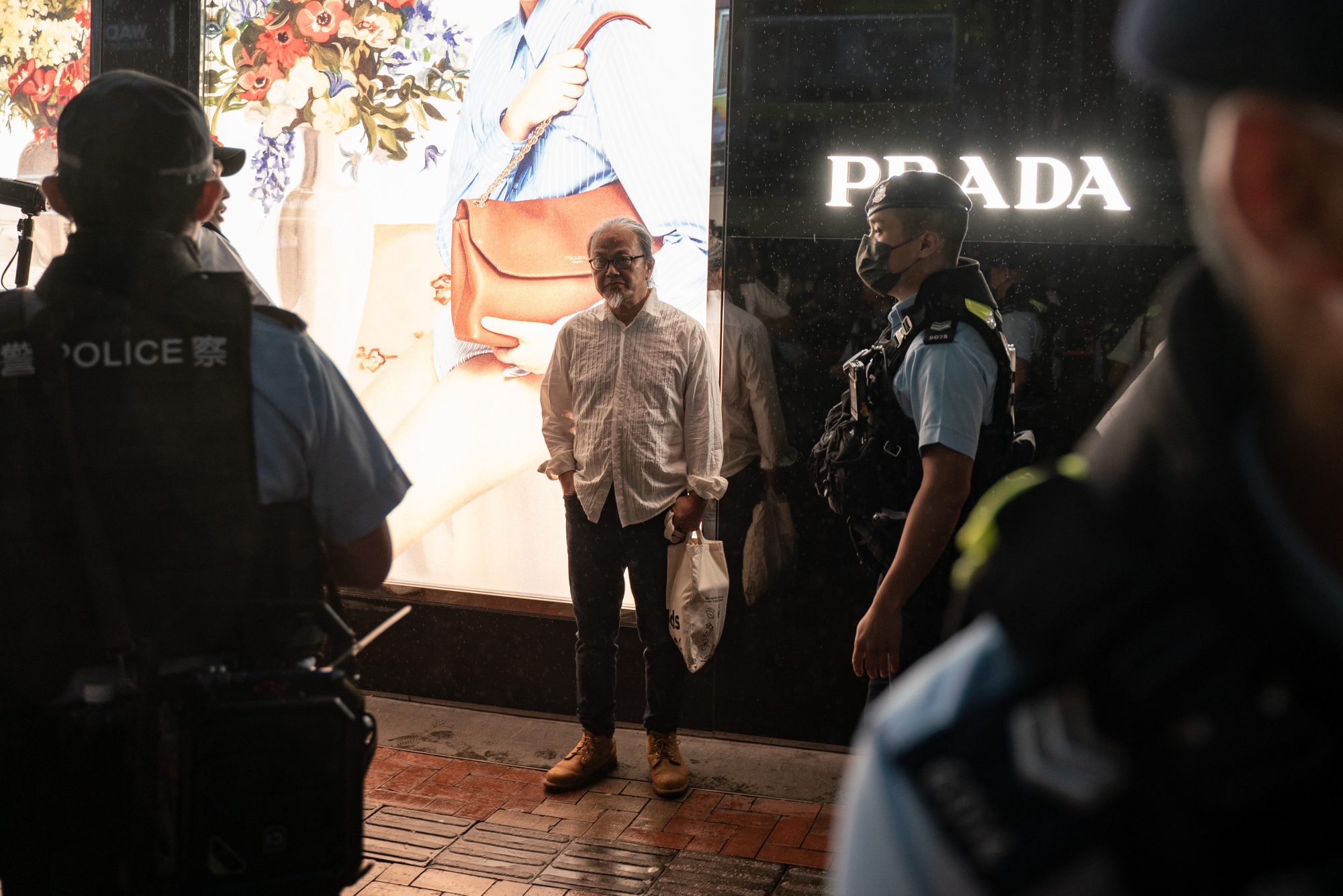 Sanmu Chen,中间,于6月3日在香港铜锣湾区。