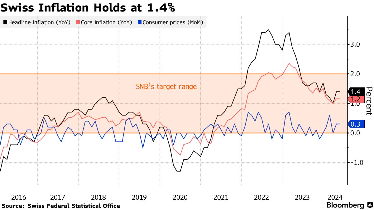 瑞士通胀匹配2024年高点,削弱了瑞士国家银行降息的理由 - 彭博社