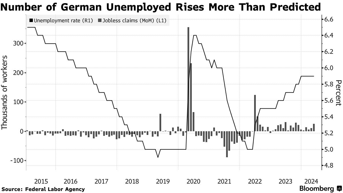 德国失业率上升超出预期,打压了经济复苏的希望 - 彭博社