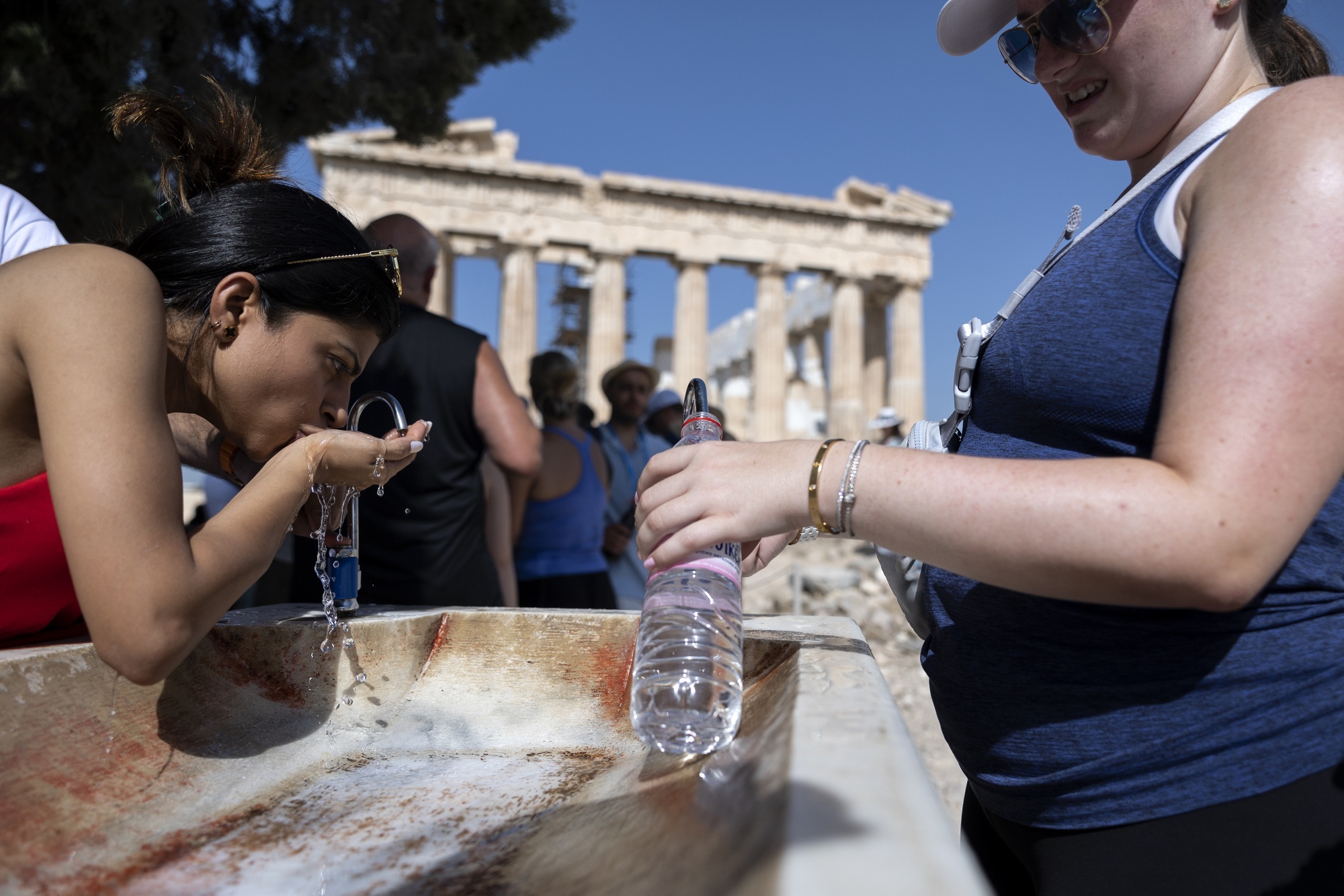 游客在雅典卫城考古遗址的一个喷泉旁,在2023年7月的极端炎热天气中。摄影师:Yorgos Karahalis/Bloomberg### 识别最脆弱的群体