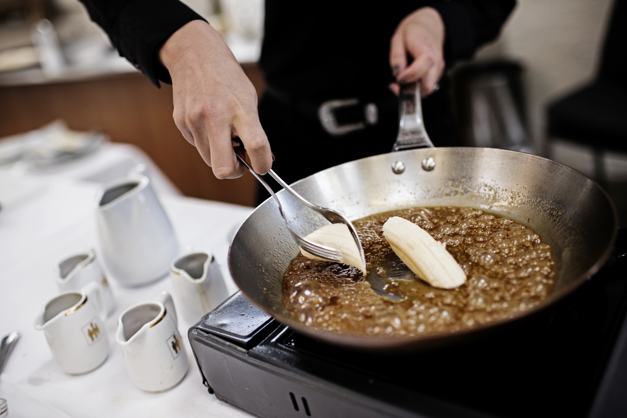 在哥本哈根酒店管理学院烹饪香蕉。来源:哥本哈根酒店管理学院Birk Petersen并不是素食主义者,她承认让除了肉之外的食物成为一餐的主角是一项挑战,但她表示看到了学习制作口感和视觉吸引力强的植物性菜肴的巨大潜力。“我们需要摆脱基于你吃什么来划分你是谁的尖锐界限,”她说。“素食主义者不必成为你的身份。”