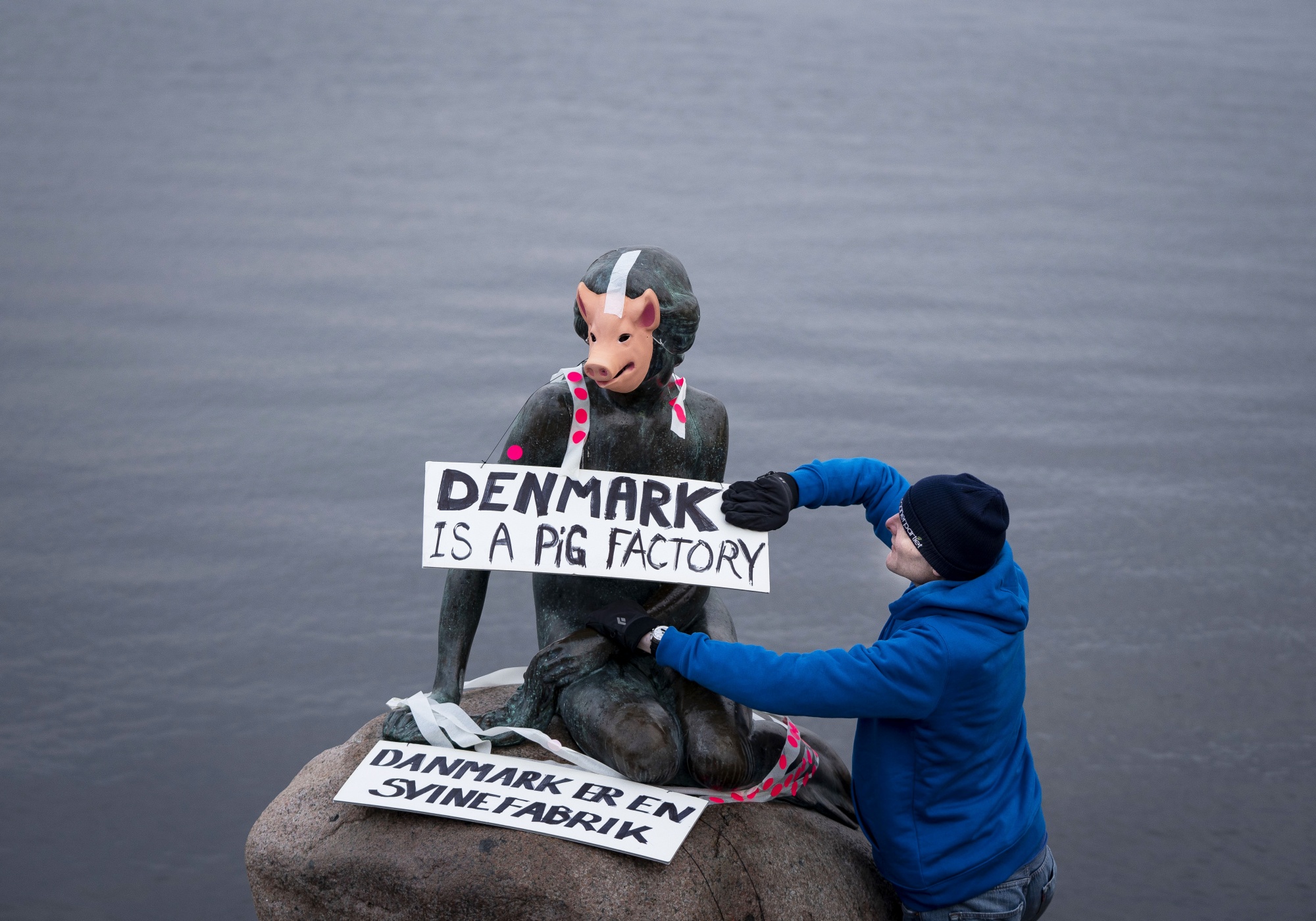 2020年哥本哈根一场宣传活动中来自丹麦“素食党”的活动人士。摄影师:Liselotte Sabroe/AFP/Getty Images因此,来自丹麦的计划 — 一个大型猪肉和乳制品出口国 — 在国际观众眼中显得更加引人注目,丹麦素食协会秘书长Rune-Christoffer Dragsdahl表示。该计划缺乏具体目标,因此在政治上并不具有争议性,这有助于赢得素食主义者和该国食品游说团体的支持。