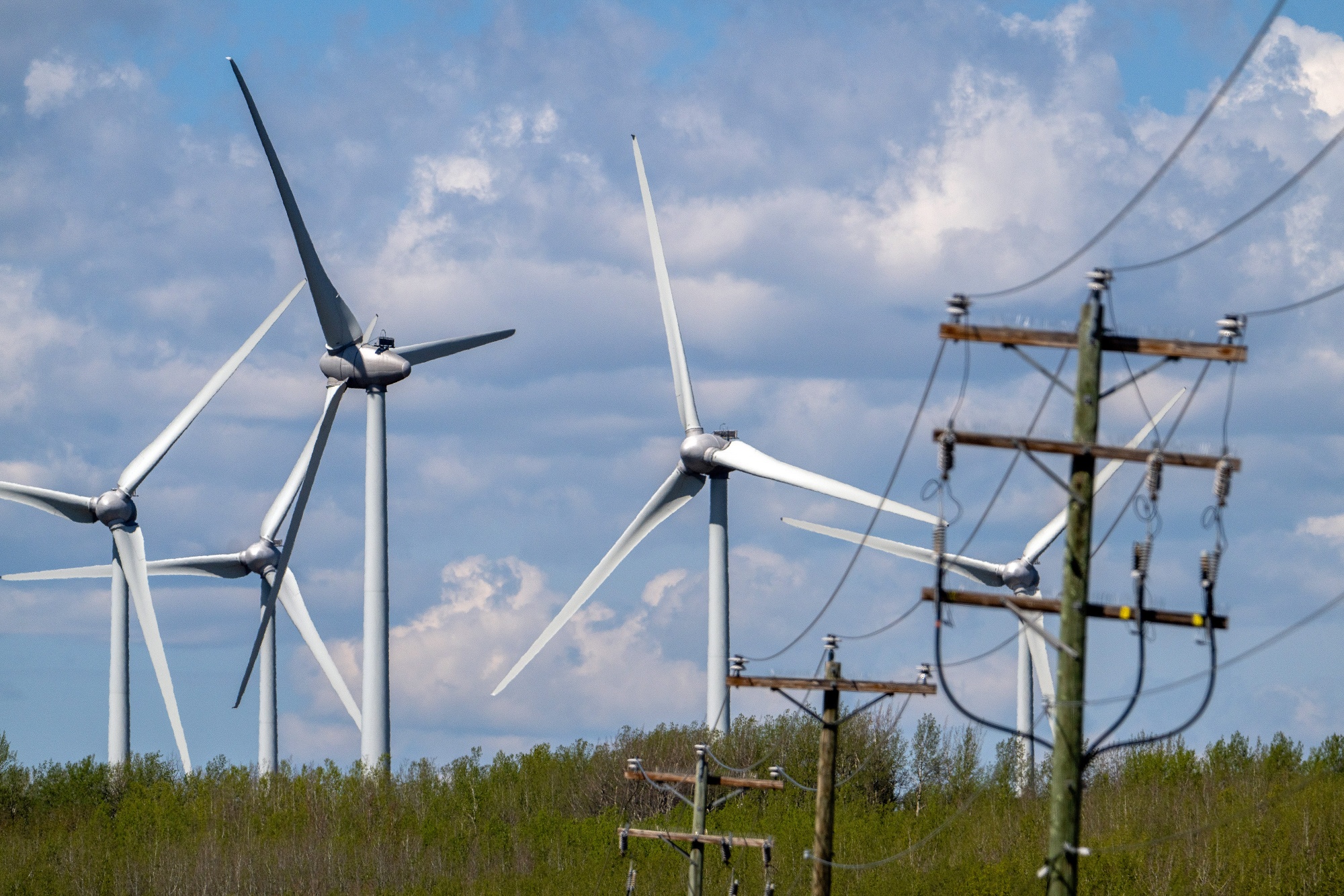 加拿大熊山风力发电场的风力涡轮机,2024年5月23日星期四。