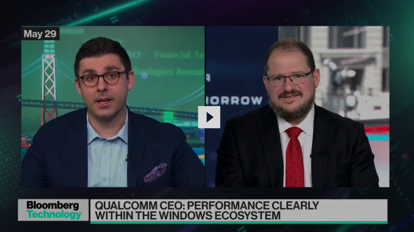 观看高通公司首席执行官Cristiano Amon在彭博电视台接受采访,谈论该公司针对个人电脑推出的新芯片。### 充分充电