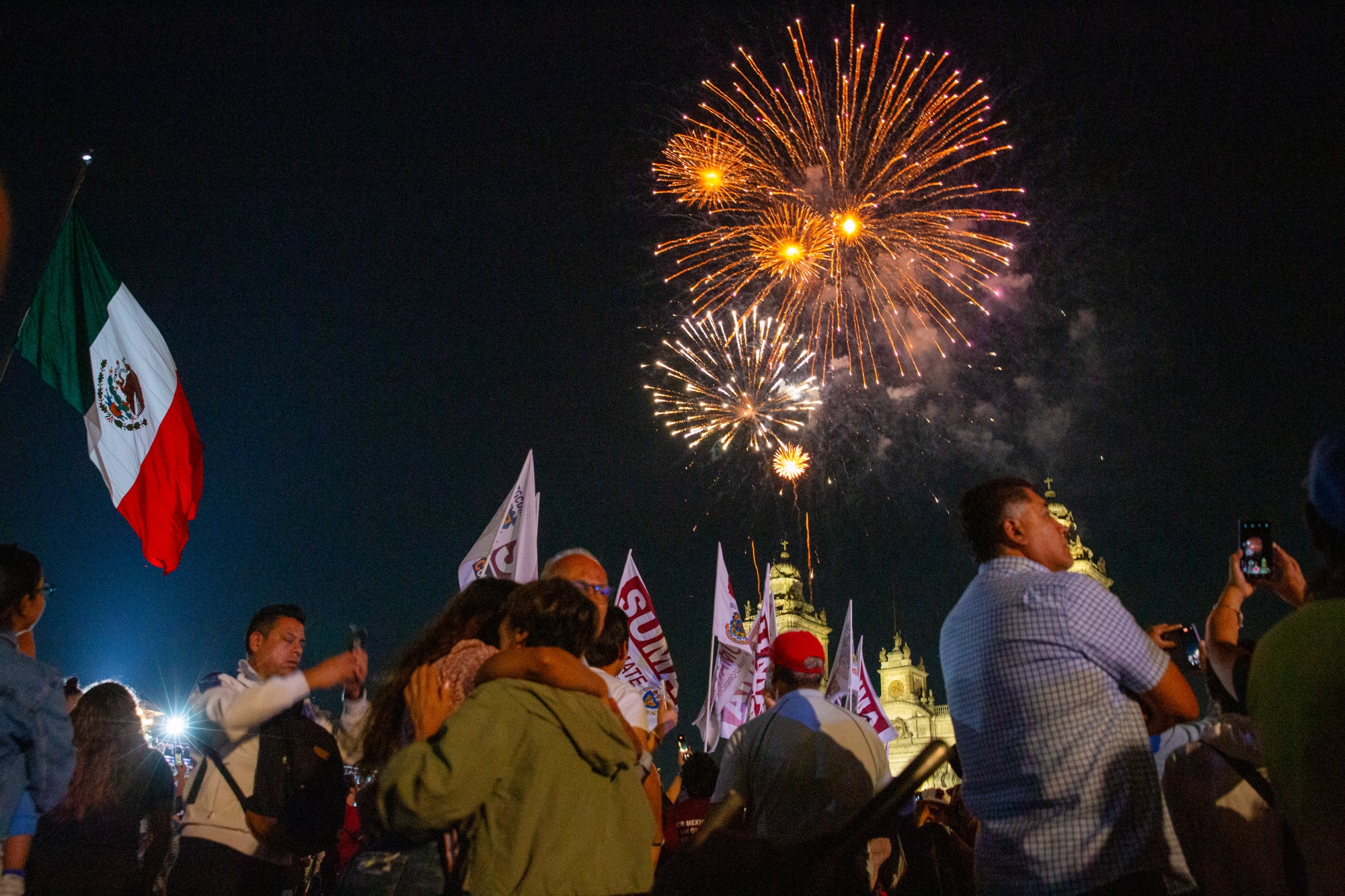 选民们在墨西哥城庆祝执政候选人克劳迪娅·谢因鲍姆在6月3日的胜利。