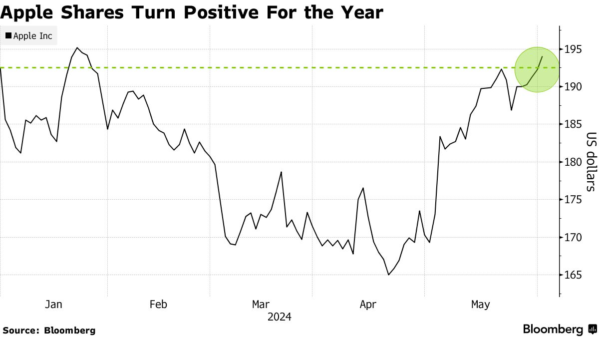 苹果公司 股价在周一收盘时创下年内新高,将其市值推近3万亿美元水平。这是投资者对这家iPhone制造商情绪好转的最新迹象。