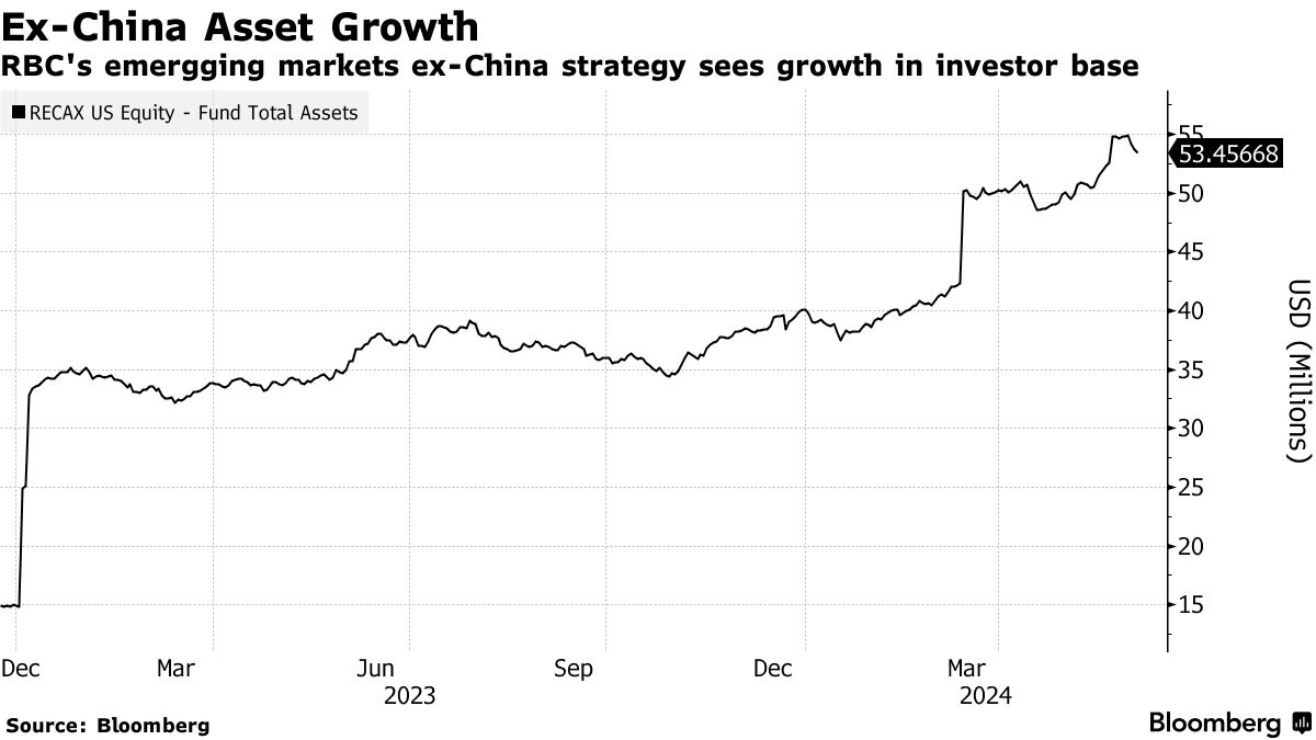 RBC在新兴市场股票策略中拥有显著地位,该类别的股票和信用策略资产约为350亿美元。2022年底,该公司推出了一只专注于不包括中国的新兴市场的共同基金,但也提供专门针对中国的策略,因为投资者越来越希望定制他们对该国的敞口,桑亚表示。据彭博社编制的数据显示,该基金自成立以来的回报率超过26%,而广义新兴市场股票指数的总回报率为16%。