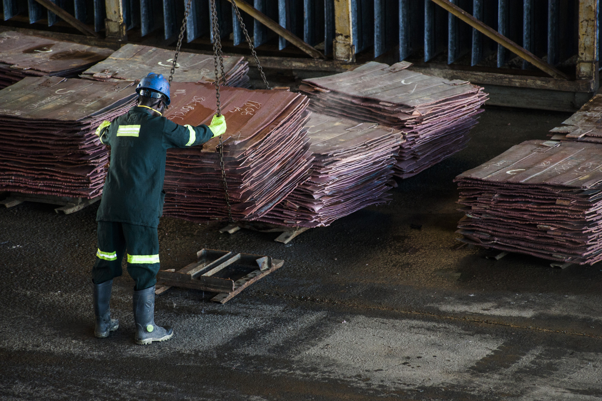 赞比亚孔科拉铜矿公司处理过程中的铜板。