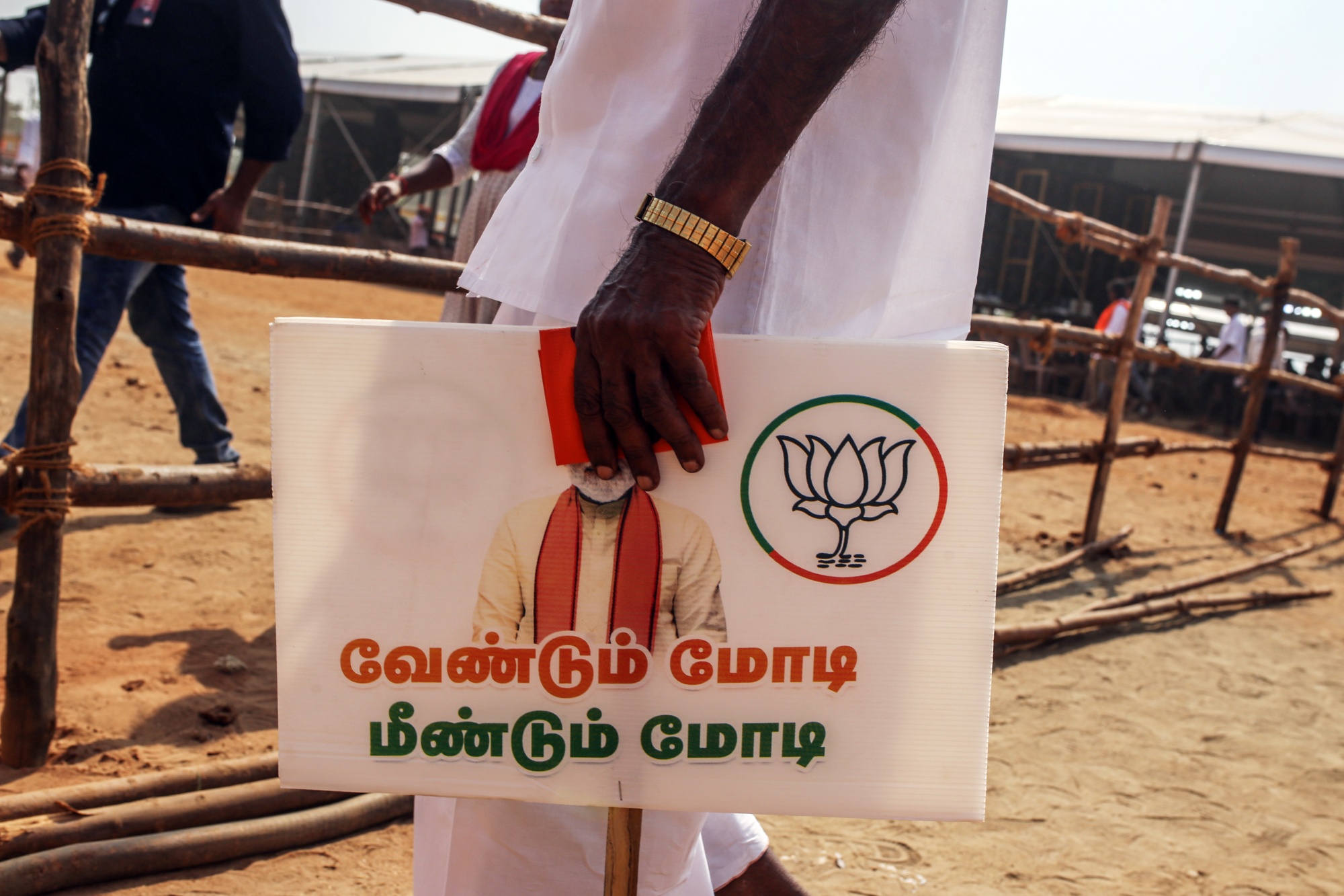 四月在泰米尔纳德邦与纳伦德拉·莫迪一起参加竞选集会的与会者。摄影师:Dhiraj Singh/Bloomberg### 这对印度意味着什么?
