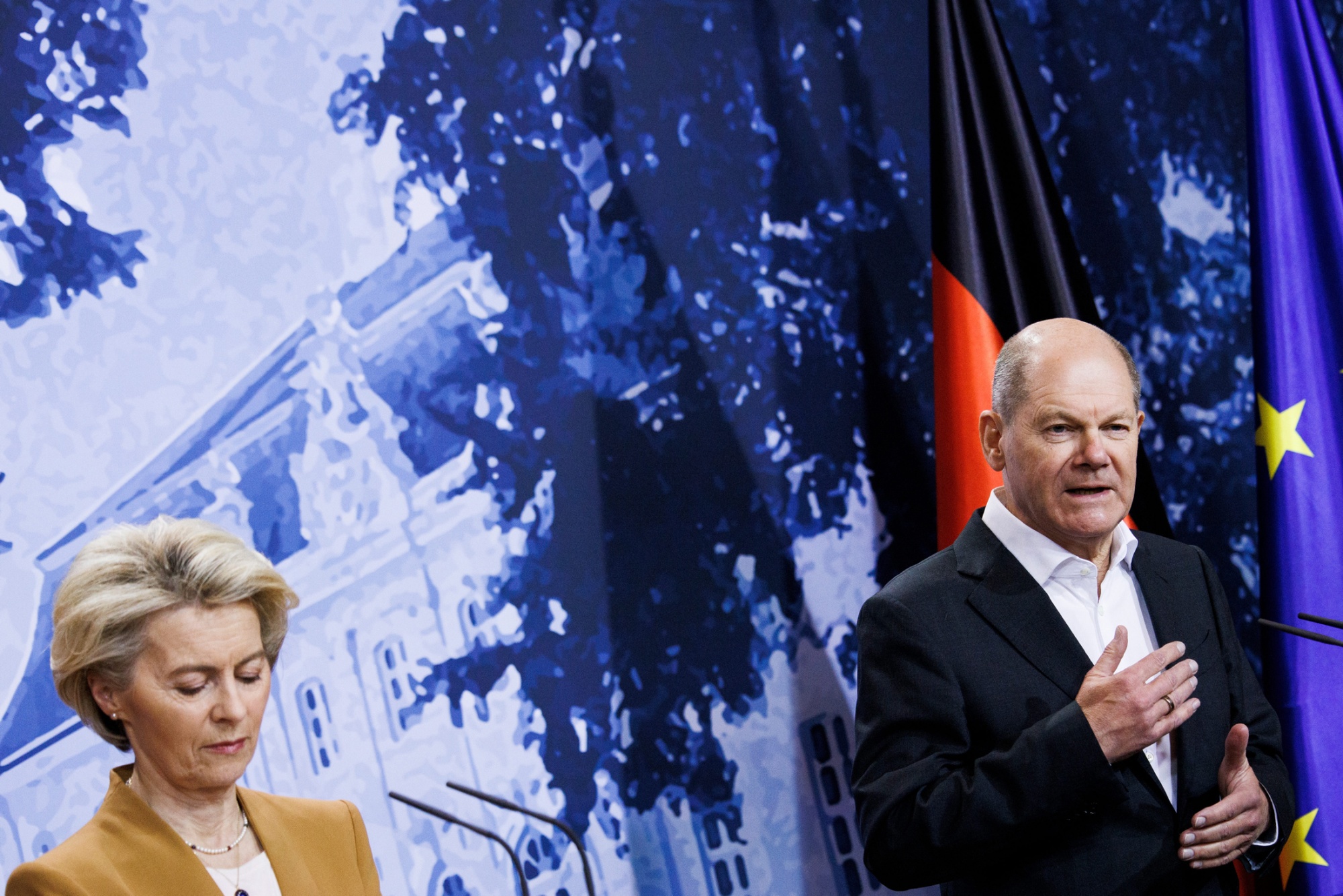 乌尔苏拉·冯·德·莱恩和奥拉夫·肖尔茨。摄影师:卡斯滕·科尔/盖蒂图片社