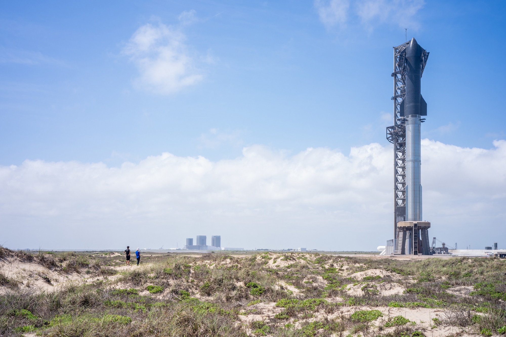 人们在德克萨斯州布朗斯维尔(Brownsville)计划发射前一天参观了“星舰飞行3号”火箭。