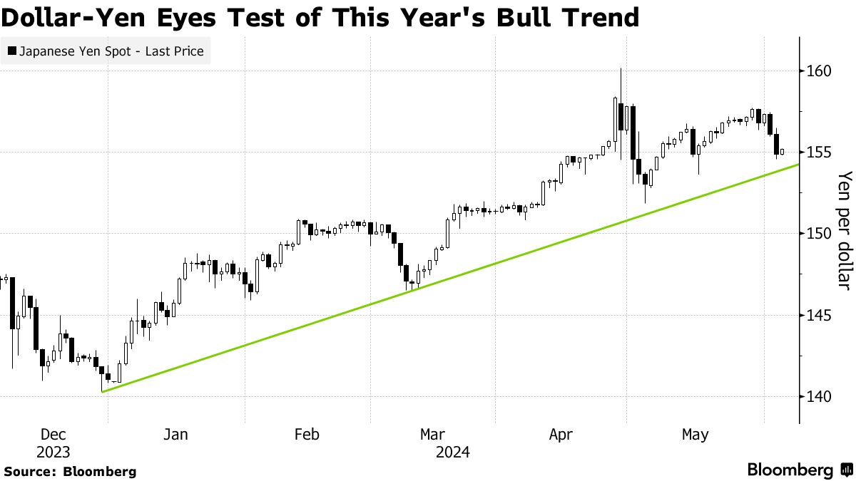 周二,美元兑日元在彭博社报道称日本央行可能在下周的政策会议上讨论减少债券购买后回落至155以下。日元走强削弱了carry trade的吸引力。