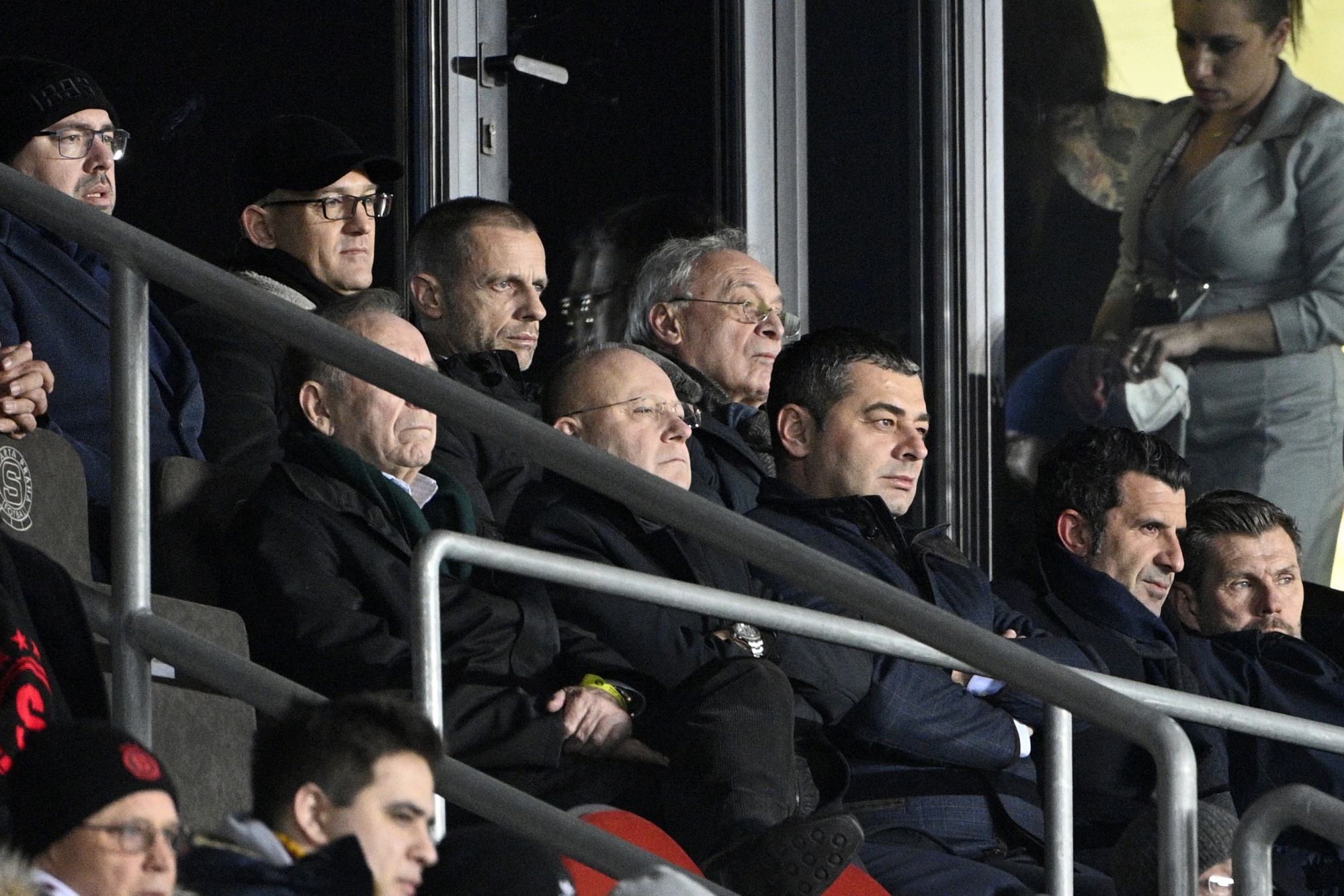 Frantisek Cupr,左上角,和Daniel Kretinsky观看了2022年在布拉格对阵贝尔格莱德游击队的比赛。摄影师:米哈尔·卡马里特/CTK/AP根据彭博亿万富翁指数,克雷廷斯基的净资产约为80亿美元,主要通过他的电力公司建立起来。
