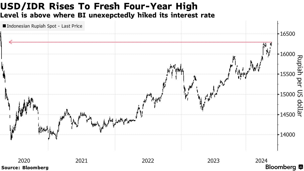 周三,印尼盾兑美元跌至16,293,最弱自2020年4月以来。这使得亚洲收益最高货币之一跌破了触发印尼央行4月份加息的水平。意外加息的链接。