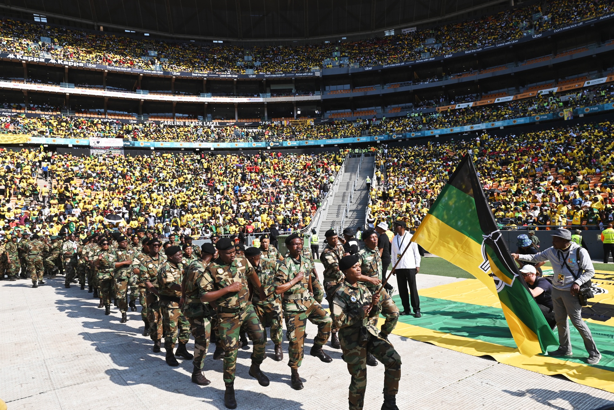 5月25日,约翰内斯堡FNB体育场的非国大支持者。摄影师:利昂·萨迪基/彭博社### 全球必读