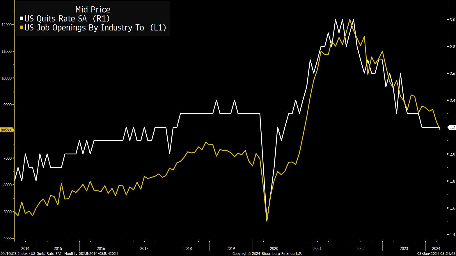 在我们等待周五的非农就业数据时,这里有昨天JOLTS报告中的两个关键图表:
