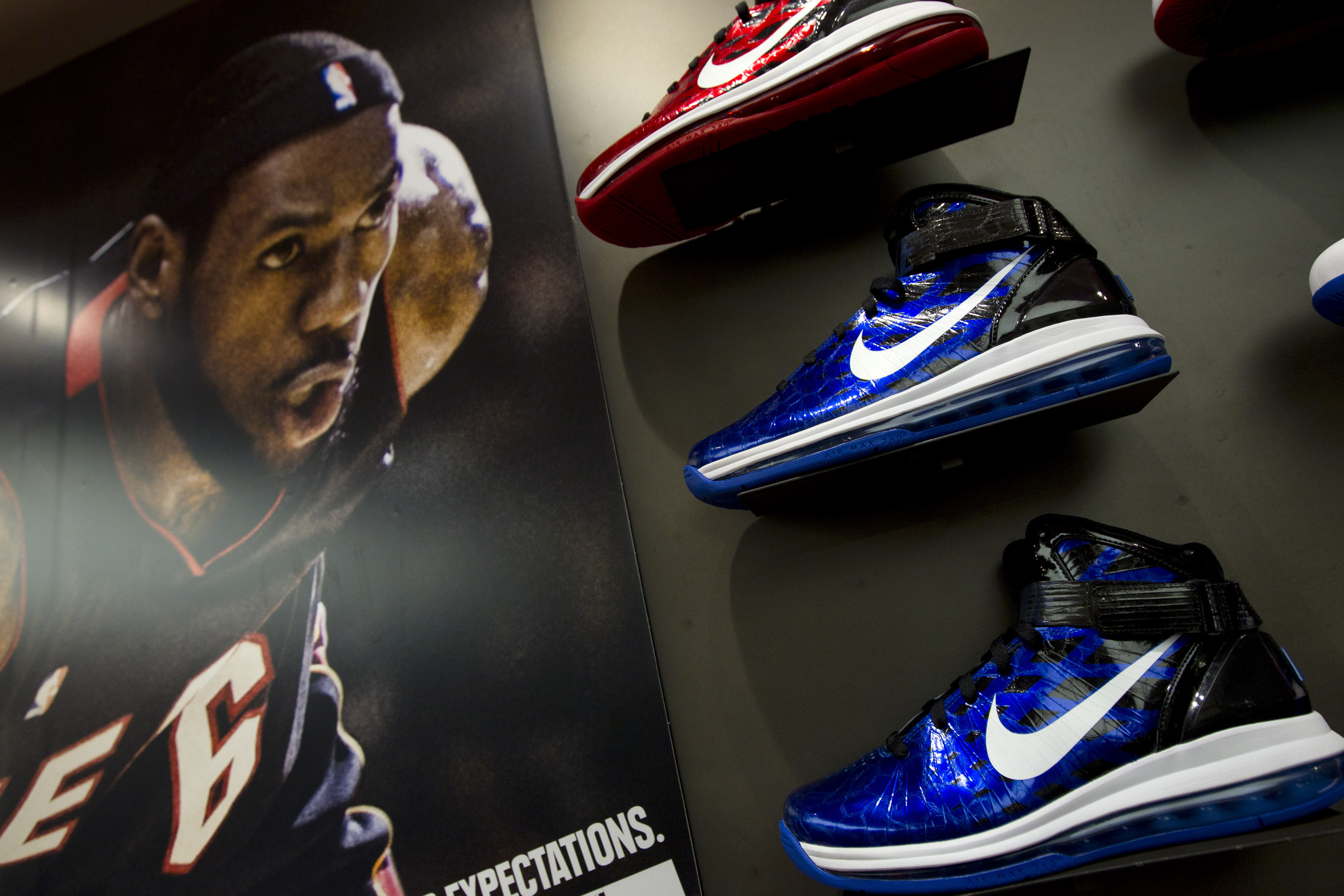 2010年,勒布朗·詹姆斯(LeBron James)的签名篮球鞋在耐克纽约旗舰店展出。摄影师:Jin Lee/BloombergNBA超级巨星时代之间的平静对耐克有着重大影响。这家体育用品巨头曾经在北美篮球鞋市场占有超过90%的份额,但这种情况已经持续受到压力多年。现在,其业务的其他部分,如跑步,也在失去市场份额,导致业绩不佳,裁员和股价下滑。