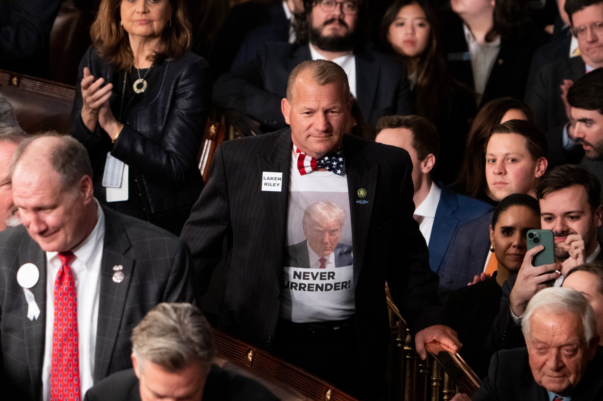 德克萨斯州代表特洛伊·内尔斯在三月份的国情咨文演讲中穿着印有特朗普全身照的衬衫。摄影师:比尔·克拉克/CQ-Roll Call/Getty Images本应是政治耻辱和个人尴尬的时刻却变成了一个机会。在他被捕后的几天里,特朗普的竞选团队声称筹集了超过700万美元。我们从随后的联邦选举委员会文件中得知,他的竞选团队确实得到了提振,发布了当时迄今为止最好的筹款季度。