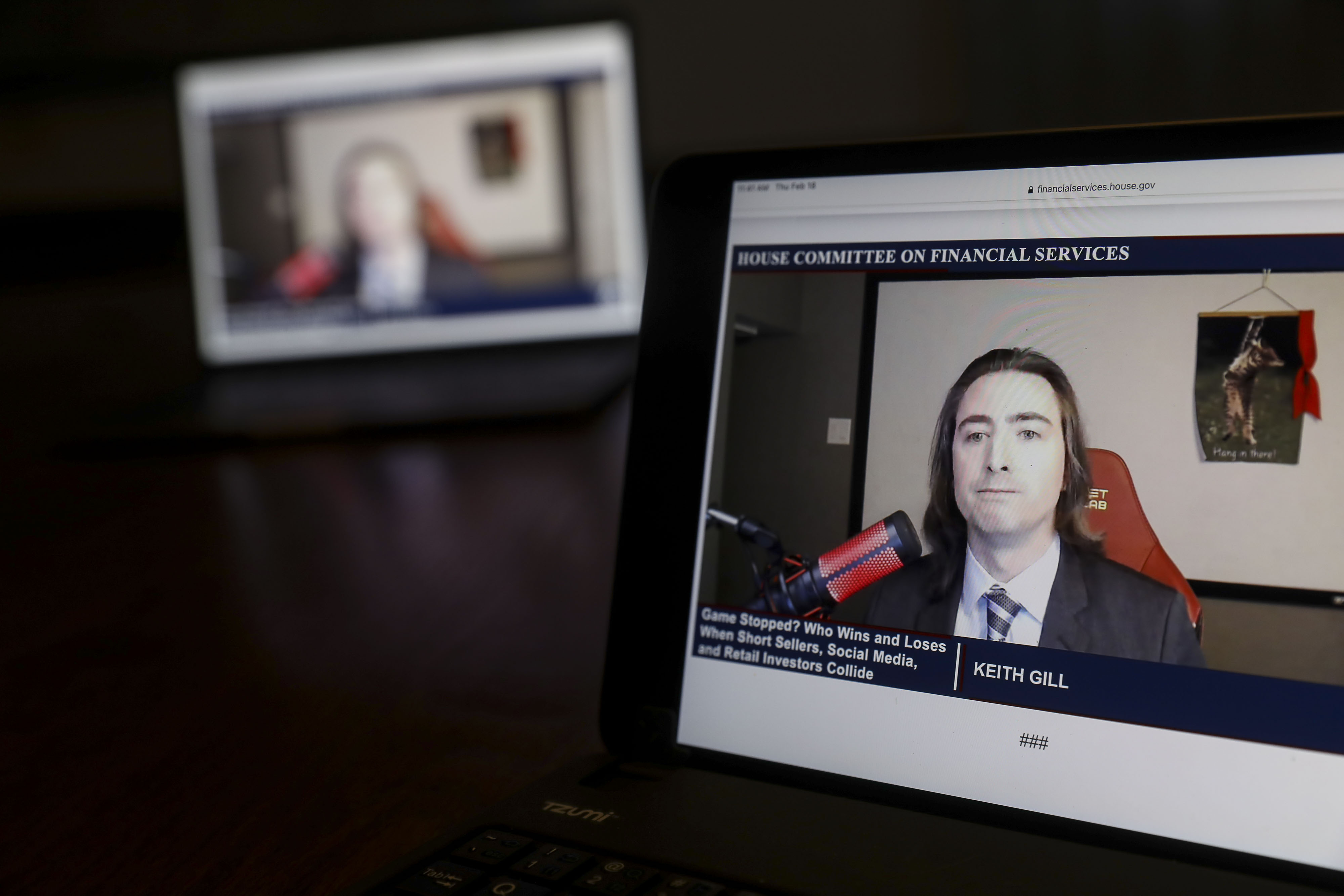 基思·吉尔(Keith Gill)在2021年2月通过虚拟方式发表讲话,参加了众议院金融服务委员会的听证会。