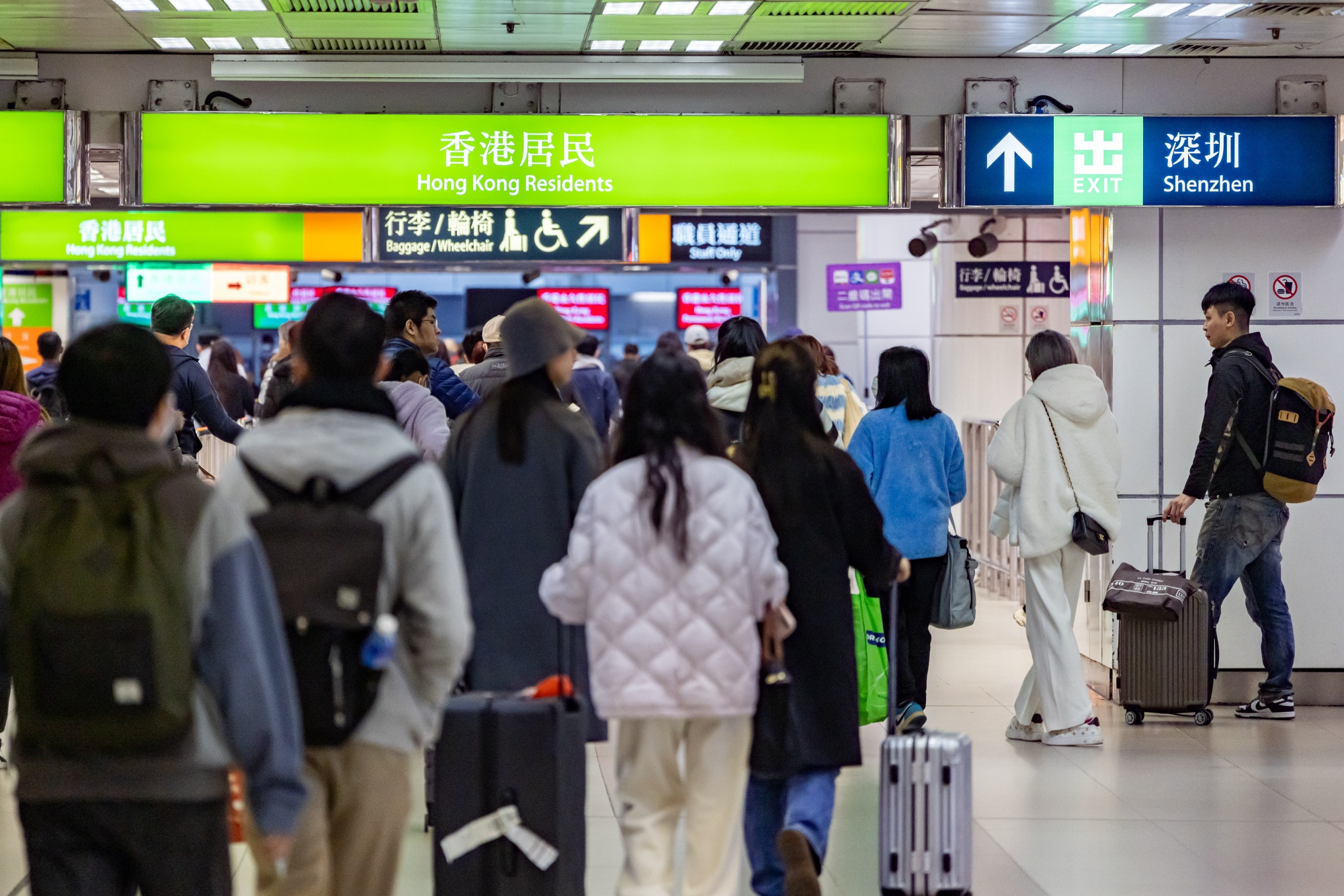 前往中国大陆的旅客在香港地铁公司罗湖站。摄影师:Paul Yeung/Bloomberg此外,人们前往深圳的目的也变得越来越多样化。Lam表示,去年大多数旅客主要是购物,而现在他们前往深圳进行健康检查和汽车维护等服务。