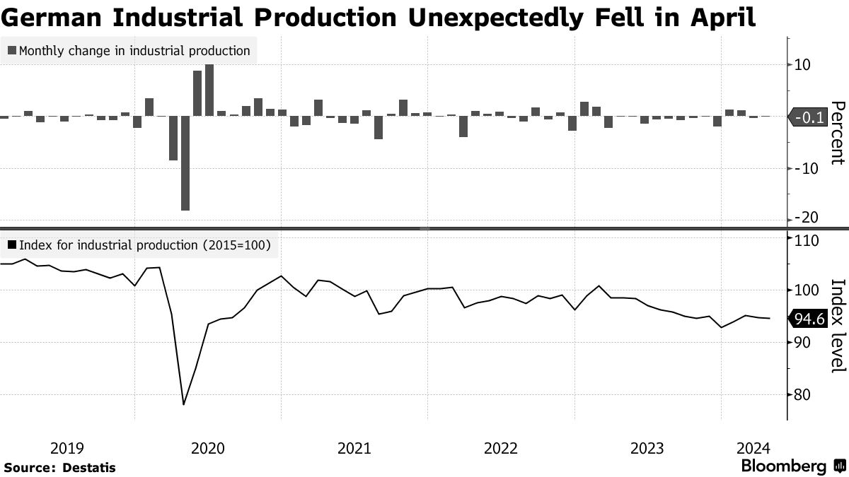 德国杜伊斯堡的高炉。摄影师:Krisztian Bocsi/Bloomberg德国4月份工业产出意外下降,这是连续第二个月下降,表明欧洲最大经济体季度初势头疲弱。