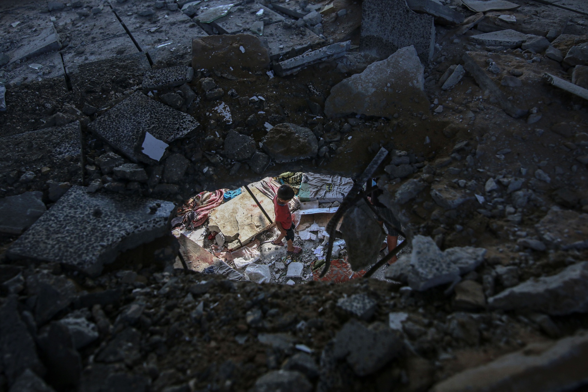 昨天以色列对努赛拉难民营的袭击后的余波。摄影师:Ahmad Salem/Bloomberg### 全球必读