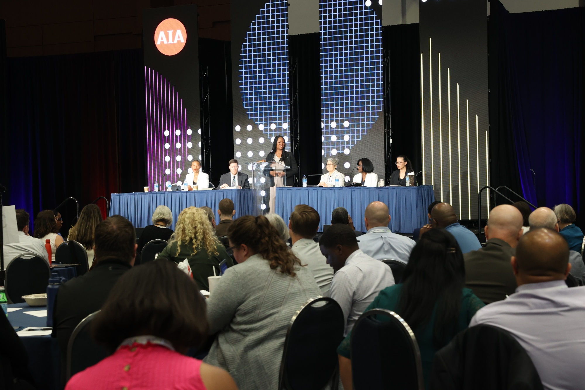 Lakisha Ann Woods(中间)与美国建筑师协会董事会成员一起出席本周的全国会议。