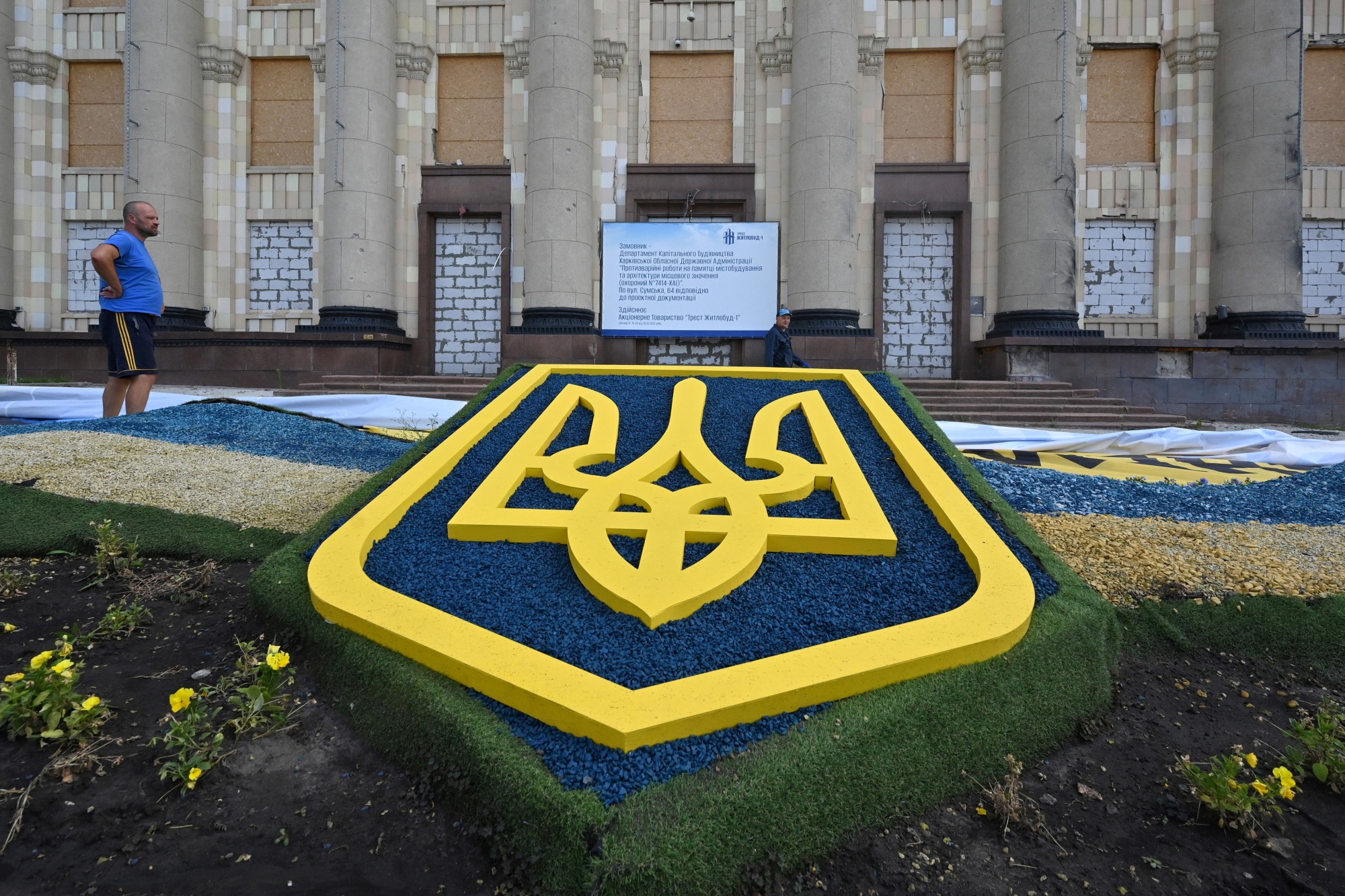 在哈尔科夫的乌克兰Tryzub符号。