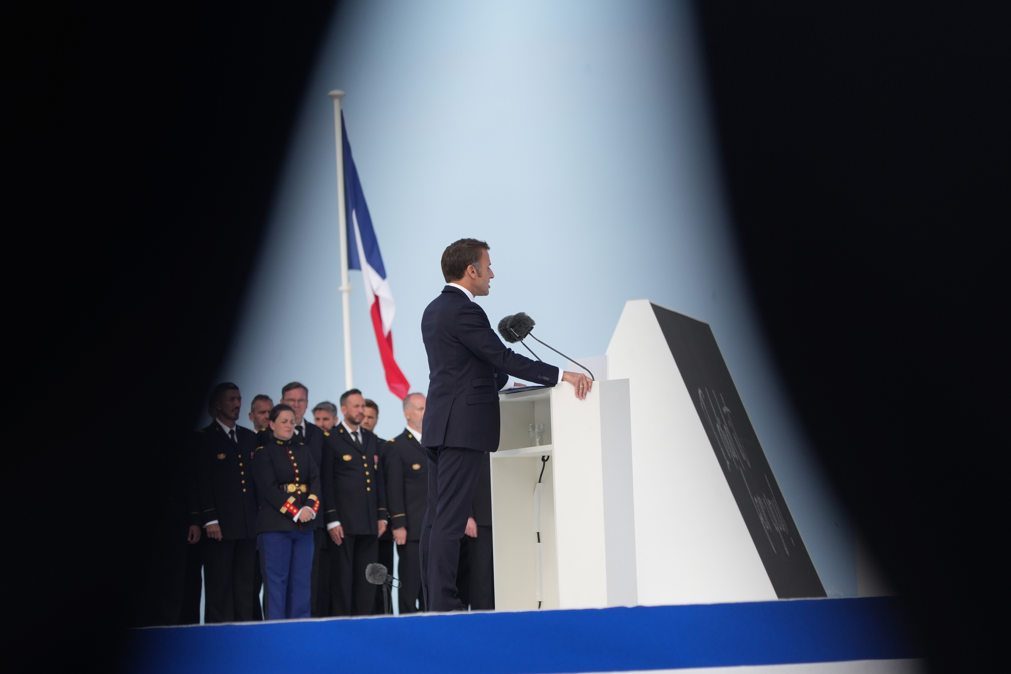 马克龙出席2024年6月6日星期四在诺曼底奥马哈海滩举行的第80届诺曼底登陆纪念活动。