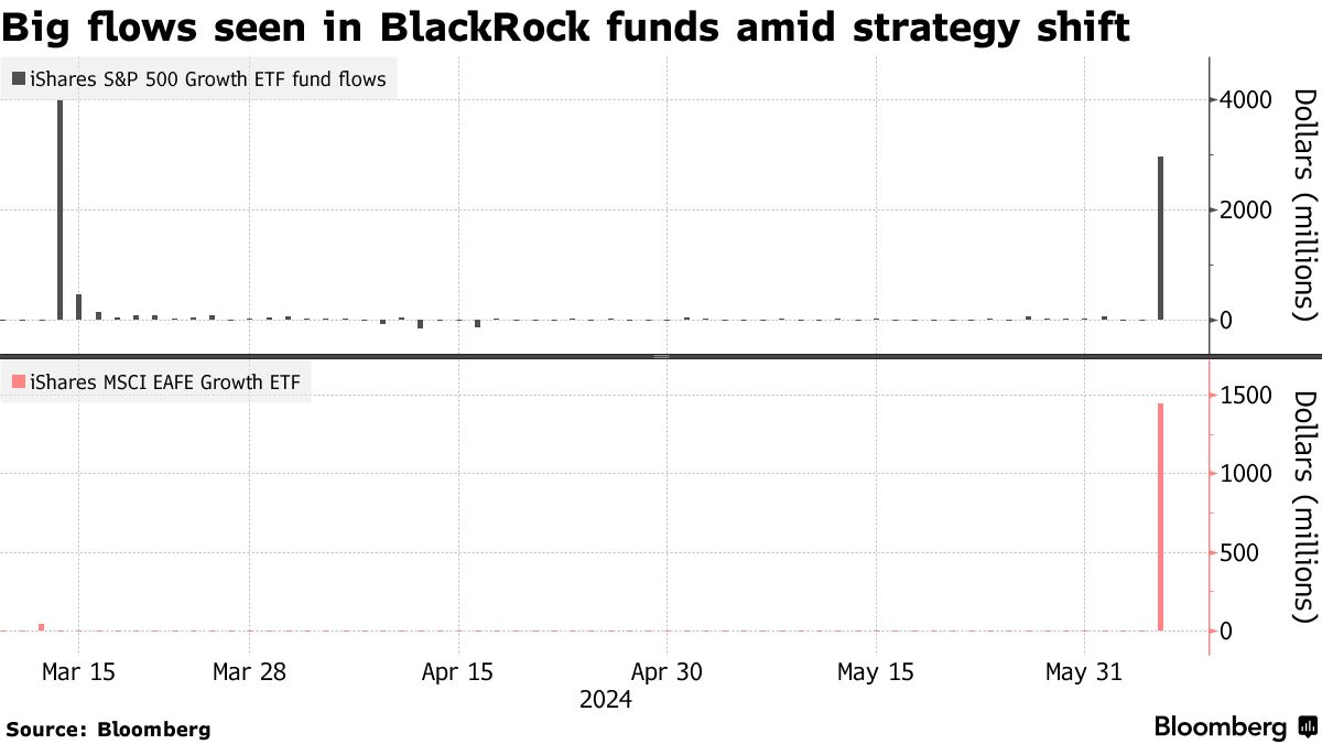 资产管理公司的模型再平衡导致iShares标普500成长ETF(代码IVW)流入29亿美元,以及iShares MSCI EAFE成长ETF(代码EFG)流入14亿美元,据知情人士透露。