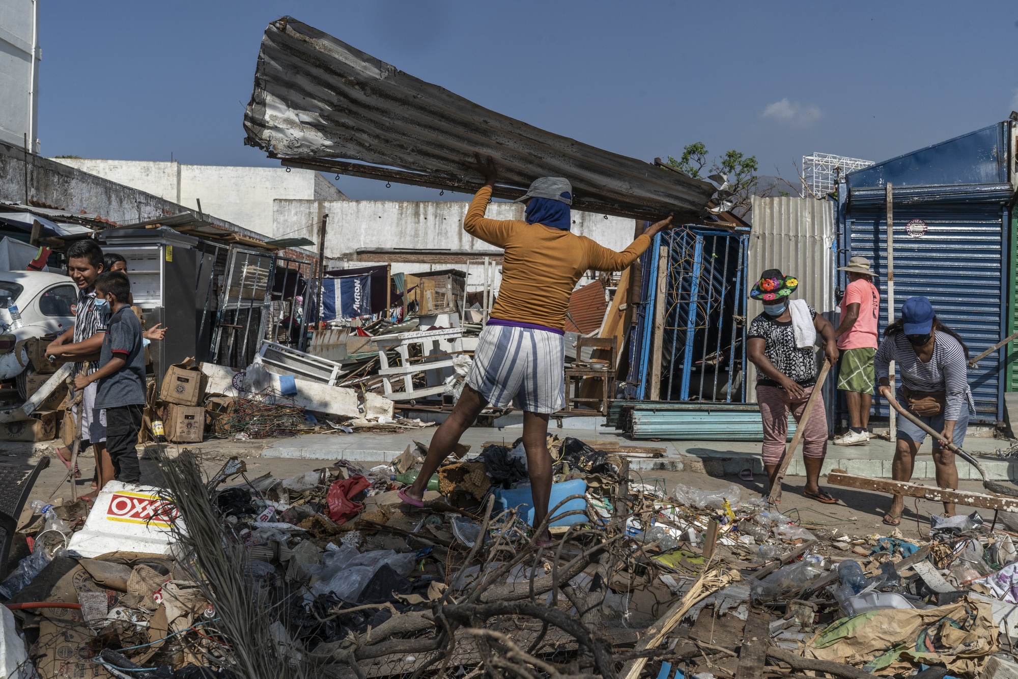 飓风奥提斯过后,墨西哥瓜雷罗州阿卡普尔科市的居民清理残骸,这是2023年的事。摄影师:亚历杭德罗·塞加拉/彭博社暴露于极端天气风险的国家也在利用灾难债券市场。今年4月,世界银行发行了三只灾难债券,为墨西哥提供4.2亿美元的风暴和地震保险覆盖。一周后,该银行为牙买加定价了1.5亿美元的灾难债券,用于应对命名风暴事件。