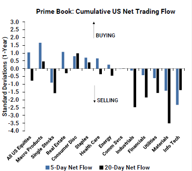 根据高盛集团的Prime Brokerage部门的数据,基金经理连续第三周净卖出美国科技股。在科技股中,半导体和半导体设备股在截至6月7日的一周中净卖出额最高,而软件股则是净买入额最高。这是与上周交易策略的逆转。
