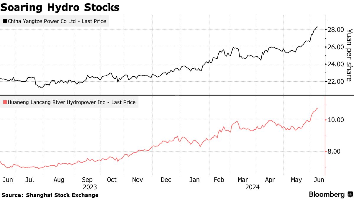 但未来更多降雨的前景正在惠及像长江电力这样的公司,这家公司是国有巨头中国三峡集团的上市子公司。该公司股价今年上涨超过20%,并且在股票挑选者中普遍被认为是买入。包括Pierre Lau在内的花旗集团分析师最近提高了对该公司的盈利预测,原因是水资源改善和正在进行的电力市场改革使其能够为电力收费更高的价格。