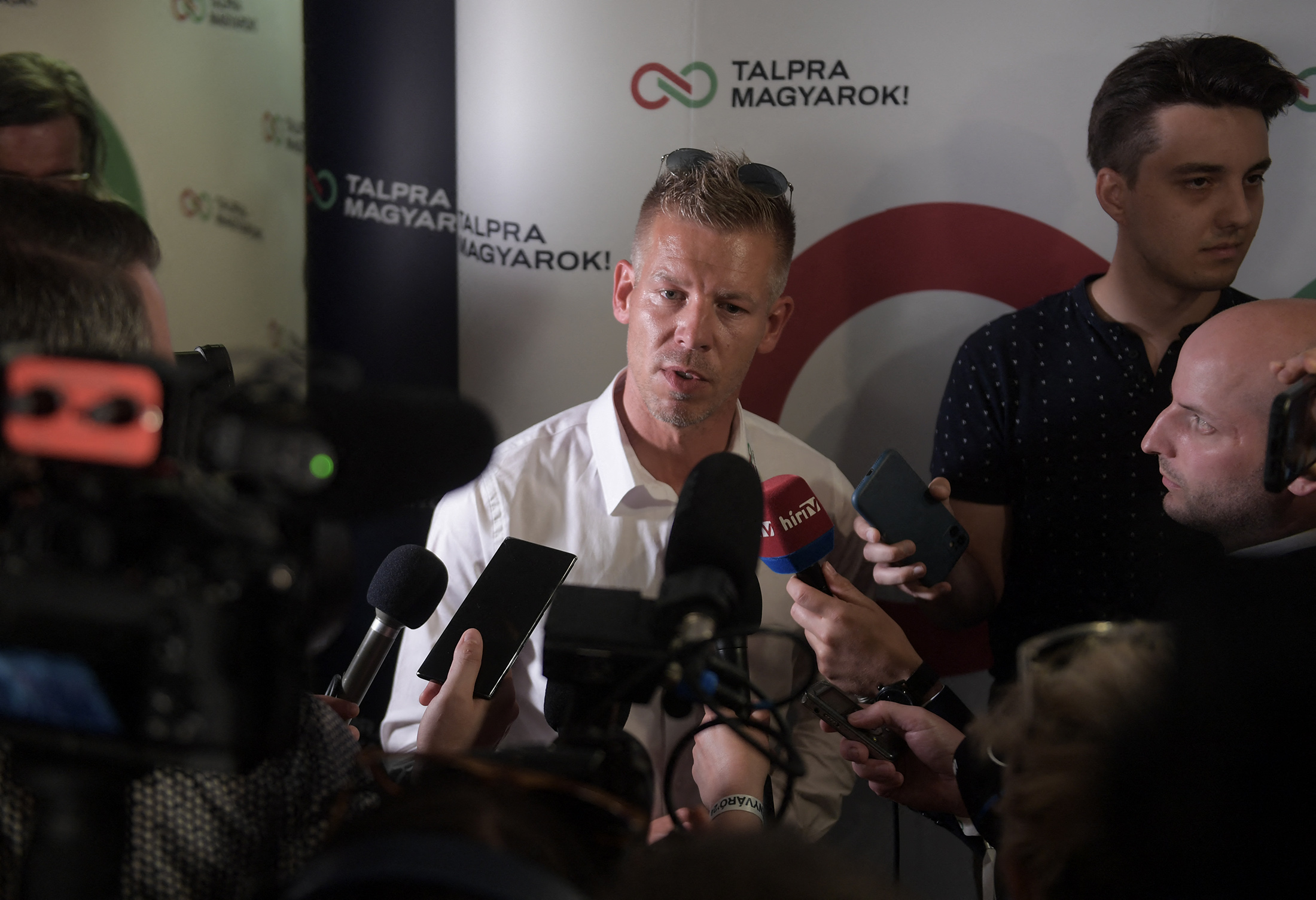 彼得·马加尔在2024年6月9日布达佩斯市政和欧洲议会选举后接受媒体采访。摄影师:费伦茨·伊扎/法新社/盖蒂图片社