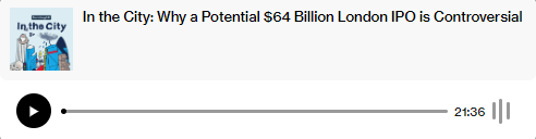 最后,不要错过最新的在城市中播客节目,分析了Shein潜在的500亿英镑伦敦IPO最终可能不会发生的原因: