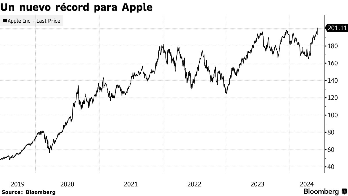 苹果在人工智能领域的宣布后创下新纪录 - 彭博报道