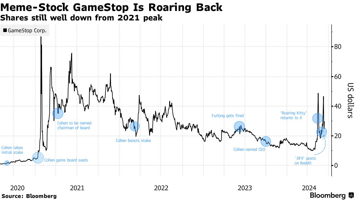GameStop(GME)在Roaring Kitty领导的股市狂欢中通过股票发行筹集了21.4亿美元 - 彭博社