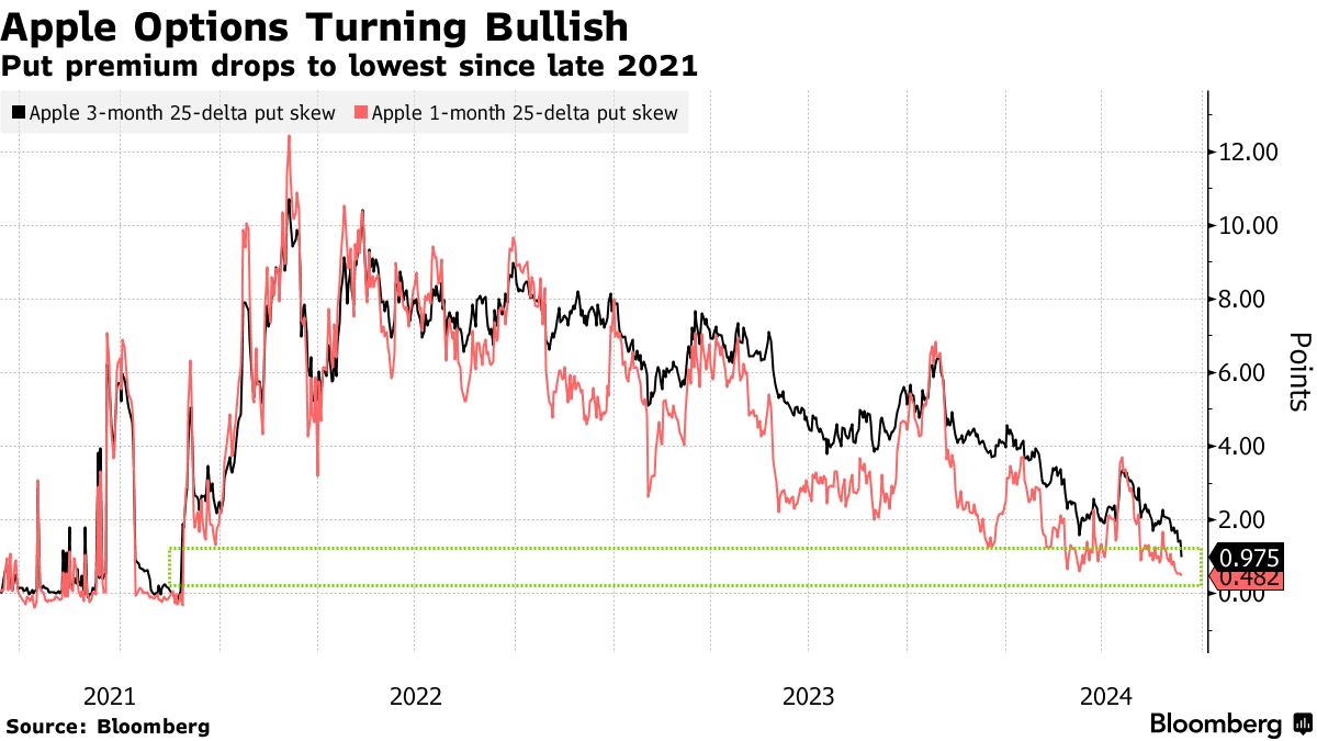 摄影师:安妮丝·林/盖蒂图片社苹果公司的认购期权交易量达到自2021年以来的最高水平,因股价从周一的低点反弹至创下历史新高。