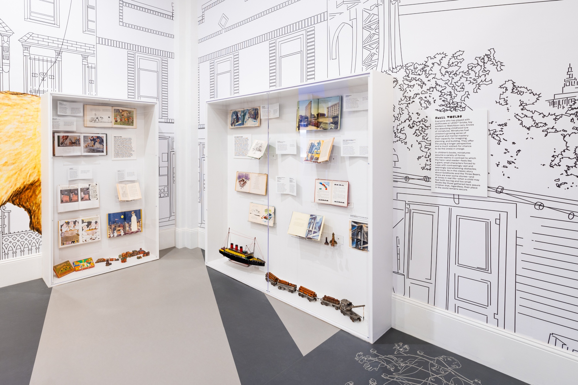 “建筑故事”,于一月在华盛顿国家建筑博物馆开幕,也试图在展示制作书籍的高艺术和鼓励孩子们绘画、写作和自己建造的低艺术之间取得平衡。加和大于,这家总部位于波特兰的设计公司,为建筑故事倾注了全部心血,他们设计了风格化的、稻草、木棍和砖块图案的门户,这些门户提到了三只小猪;阅读角摆放着令人眼花缭乱的儿童图书;以及强调讲故事或建造的有针对性的互动环节。(儿童文学专家莱昂纳德·马库斯是策展人;我和图书馆员和教育工作者一起担任咨询委员会成员。)