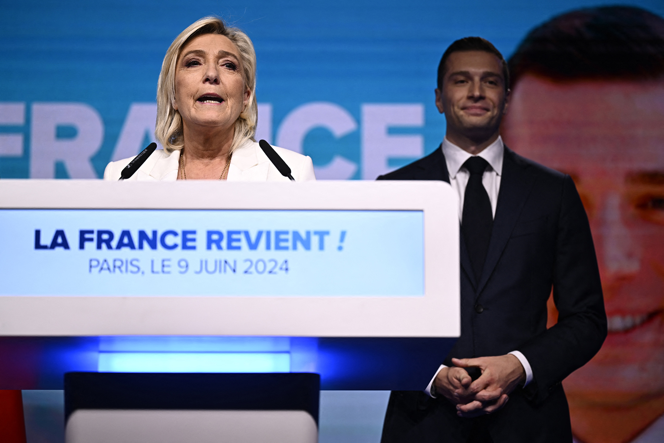 玛丽娜·勒庞在法国总统马克龙宣布于6月9日举行新一轮大选后发表讲话。来源:法新社欧洲议会选举经常被视为选民向他们的国家领导人发出挑衅的机会,而不是他们实际想要谁执政的指示。法国总统埃马纽埃尔·马克龙以戏剧性的方式对这一理论进行了考验,他在6月9日欧洲选举中,他的中间派政党被极右派对手玛丽娜·勒庞的国民集会党击败后,宣布举行紧急议会选举。这是本世纪法国领导人第一次提前举行立法选举,该国政治分析人士纷纷试图解读马克龙的冒险策略。