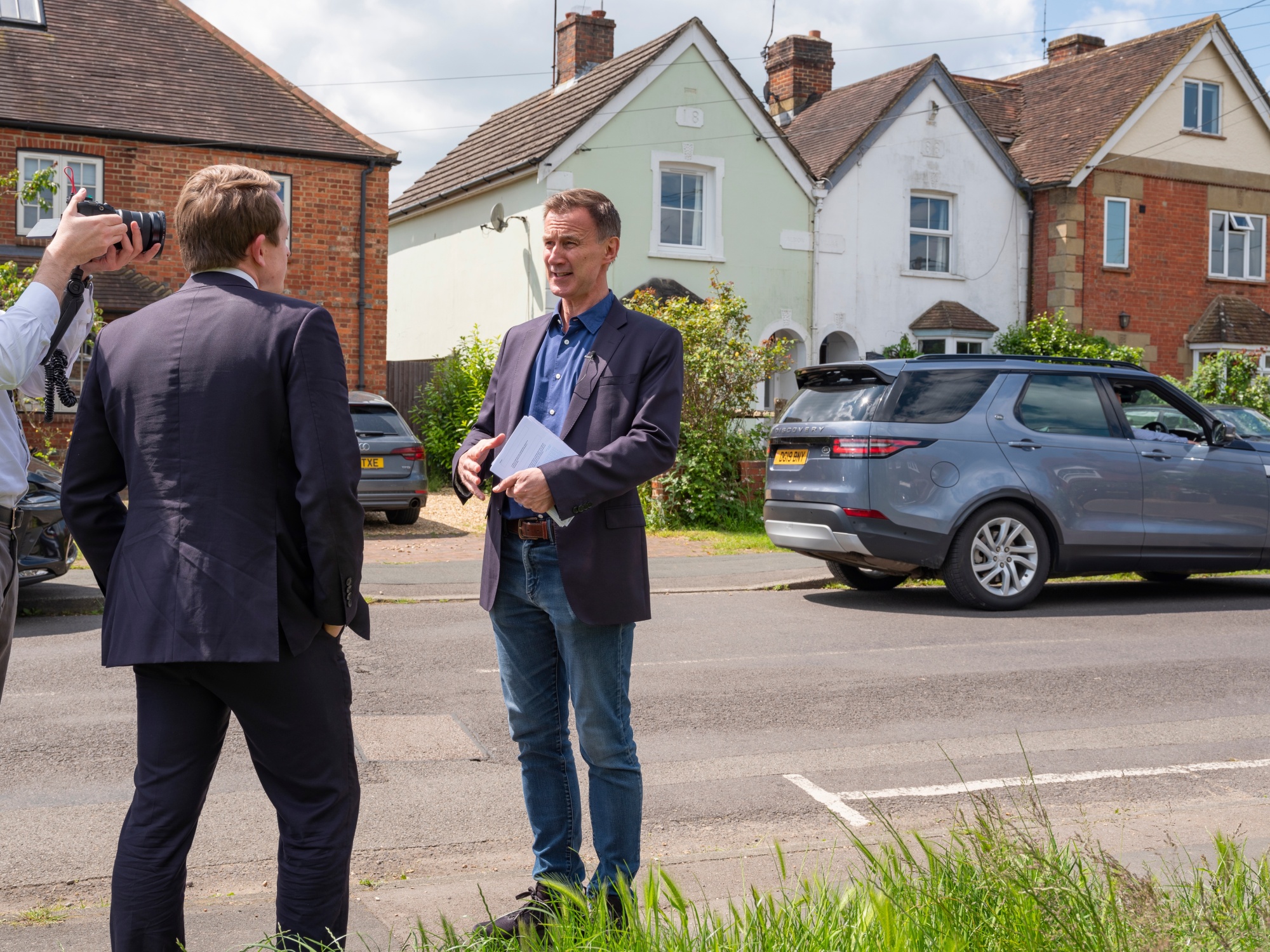 “这一定是时代的迹象,”本·菲尔登在亨特敲开这位82岁老人家门进行交谈并递交竞选传单后说道。“我以前从未见过杰里米来这里。整个保守党似乎对事情感到相当担忧,他们可能确实应该担心。”