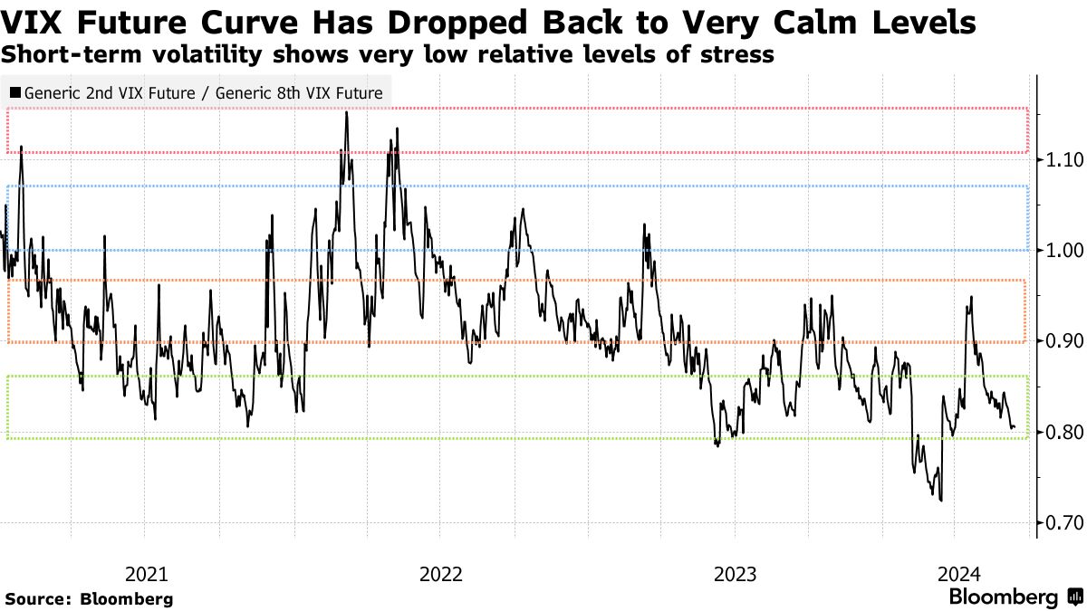 标准普尔500指数和纳斯达克100指数在美国均于周二创下历史新高,受到苹果公司股价飙升的推动,该公司总部位于加利福尼亚,发布了有关人工智能功能的几项公告。标准普尔500指数今年已上涨近13%,而纳斯达克100指数激增14%。与此同时,短期波动性已降至较低水平。