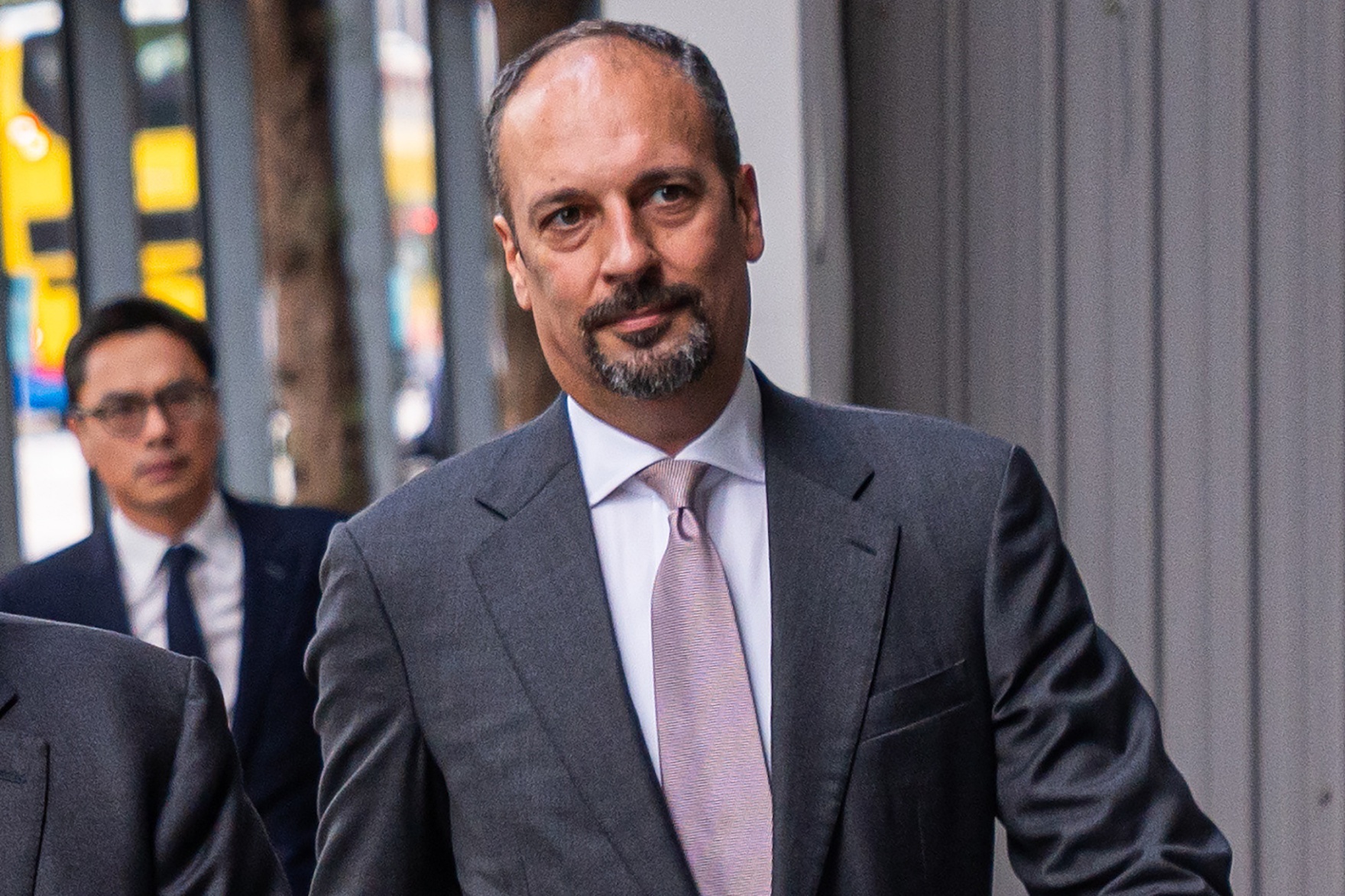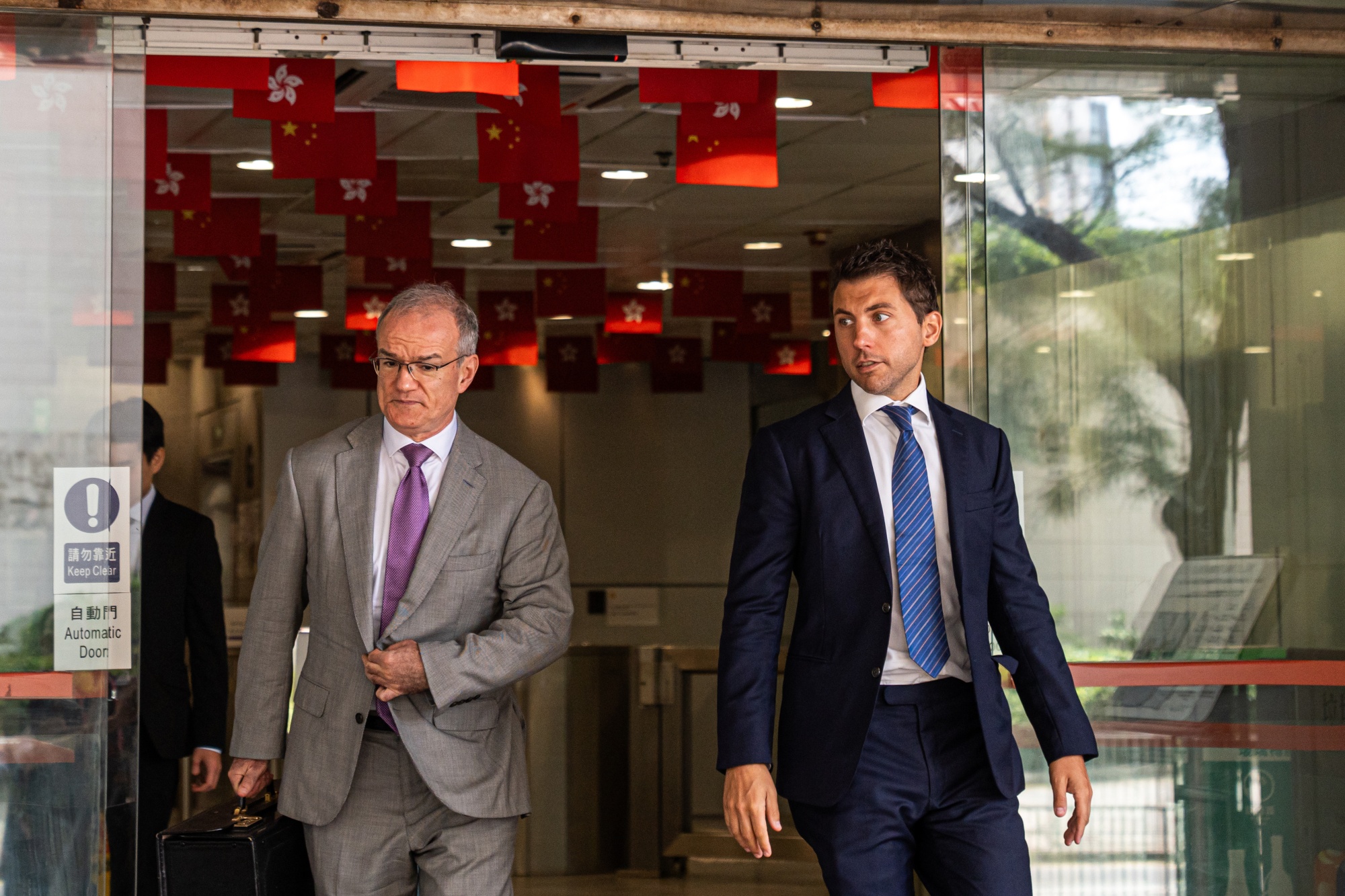Daniel La Rocca,右边是他的律师Alan Linning。摄影师:Lam Yik/彭博La Rocca作为第二被告出庭,与他的前上司和同事分开坐着。他离开时没有回答问题,将问题推给了他的律师。五月份设定的保释金为50万港币。